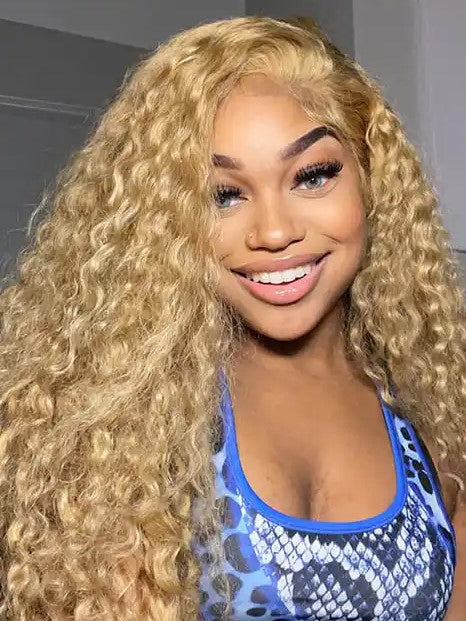 Dorsanee Hair #27 Honey Blonde Jerry Curly 13x4 Closure Wigs Human Hair Lace Front Wig