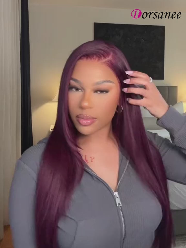 Dorsanee Dark Purple 200 Density 13x4 Transparent Lace Frontal Bone Straight Human Hair Wigs