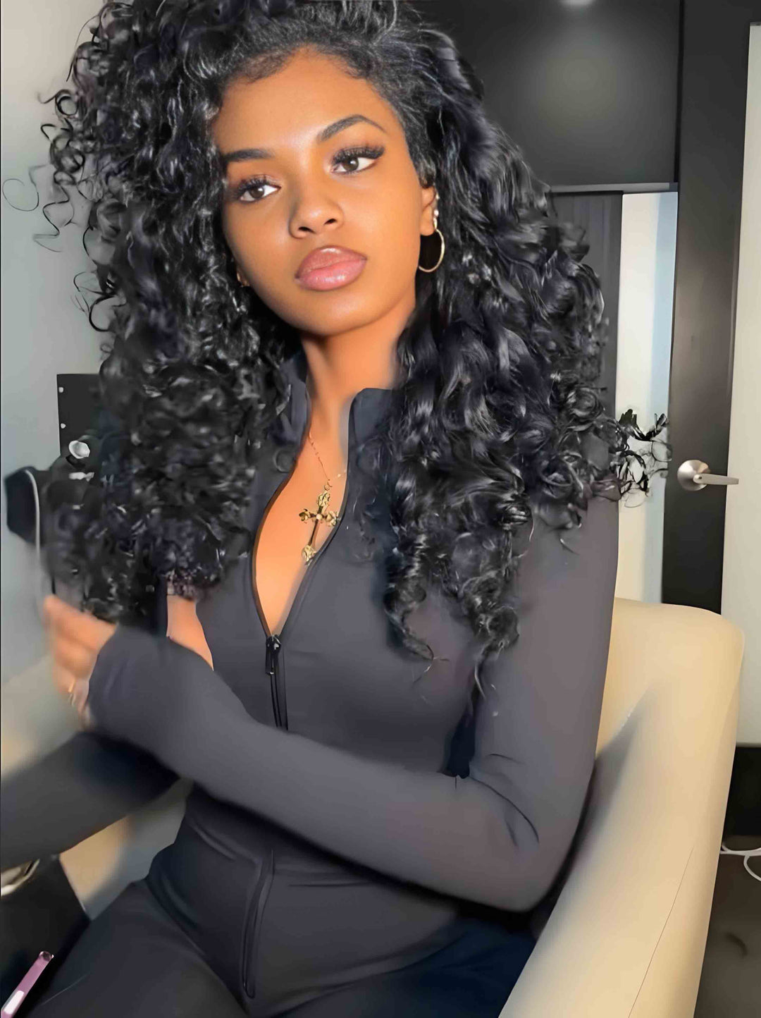 Dorsanee Crimped Deep Wave Curl 13X4 Lace Front Human Hair Wig 250 300 Density