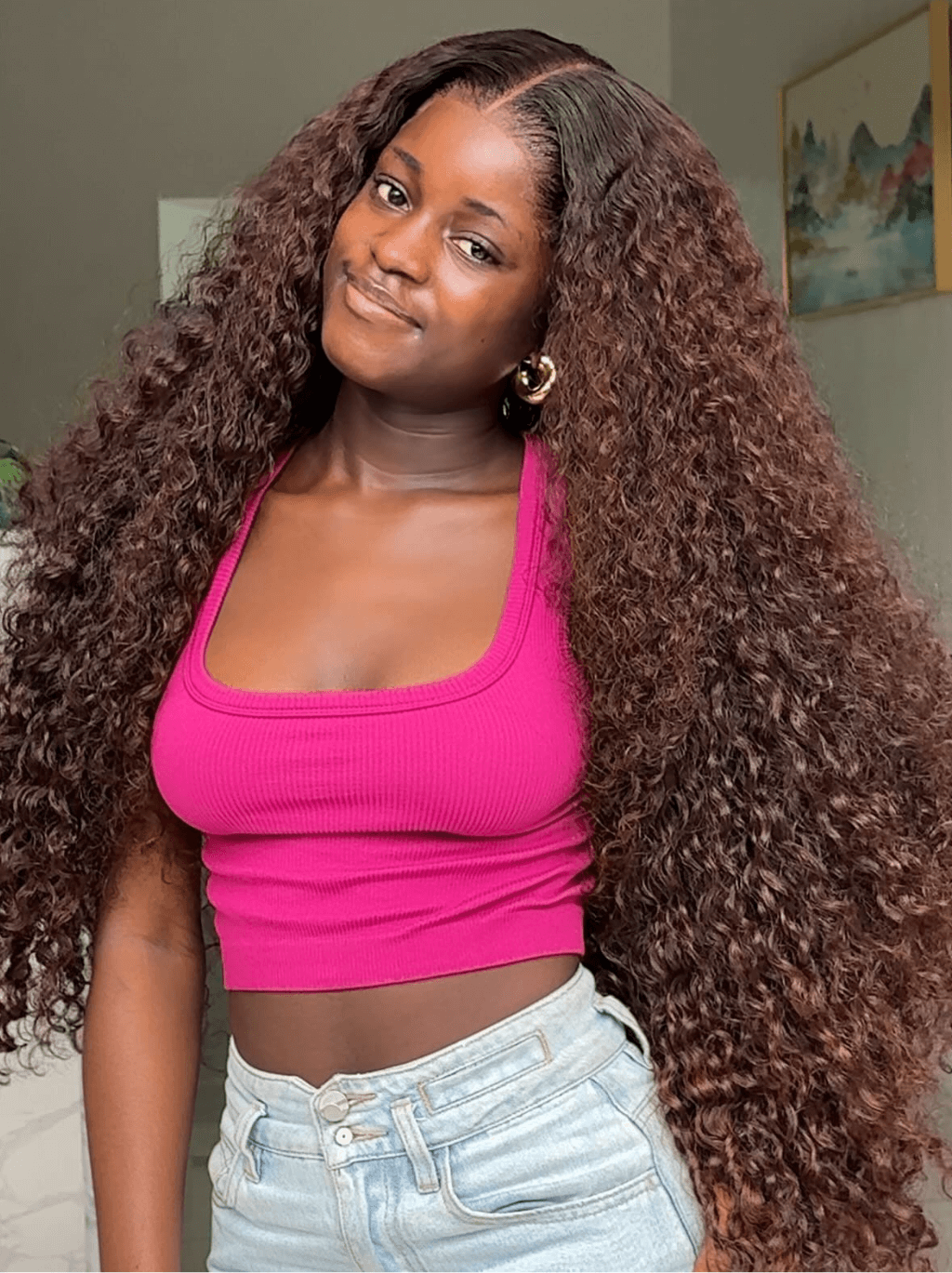 Dorsanee Dark Chocolate Brown Jerry Kinky Curly 13x4 Lace Front Human Hair Wigs 200 250 Density