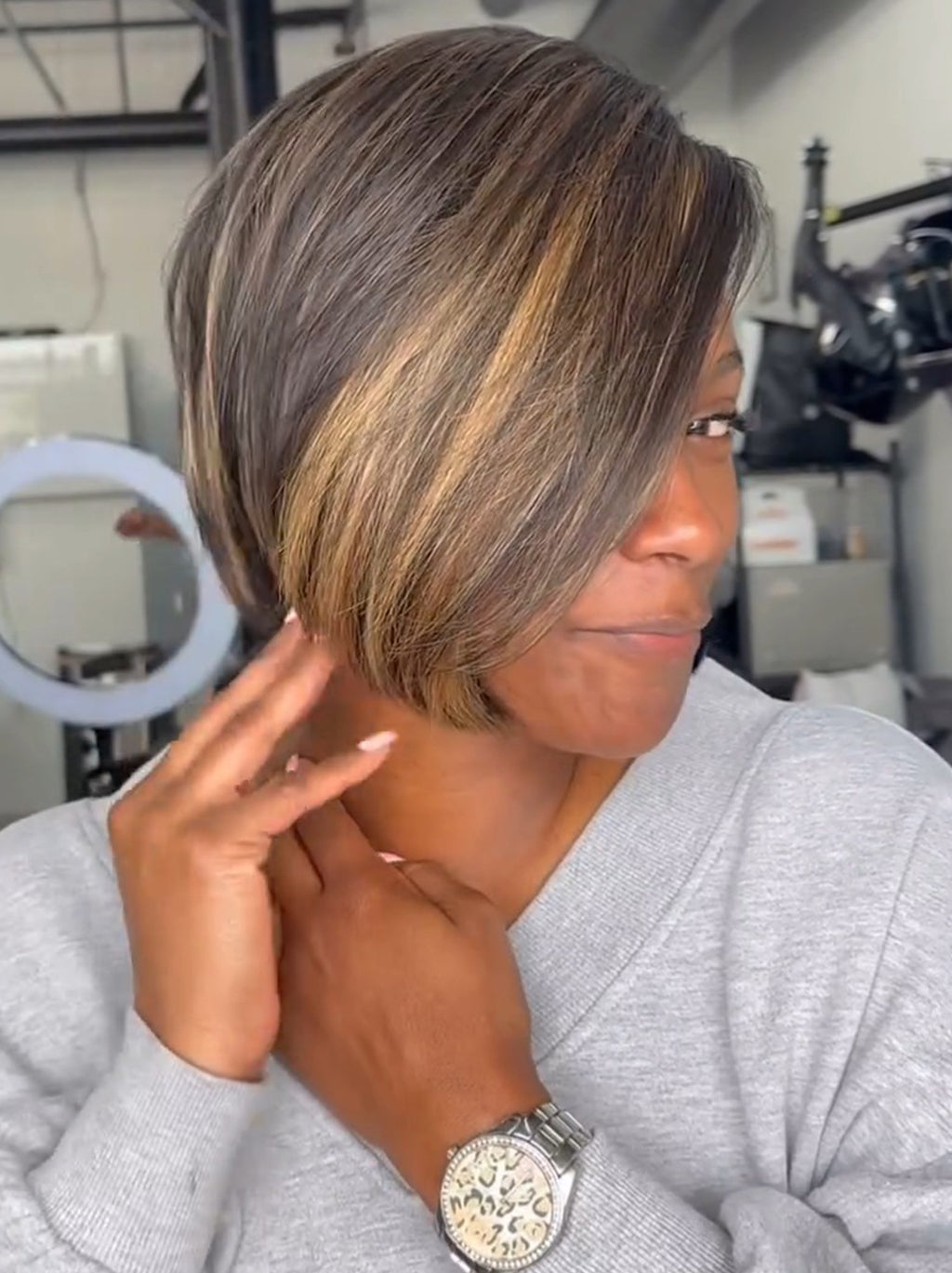 Dorsanee Short Bob Pixie Cut Brown Highlight 13x4 Lace Front Virgin Human Hair Wigs