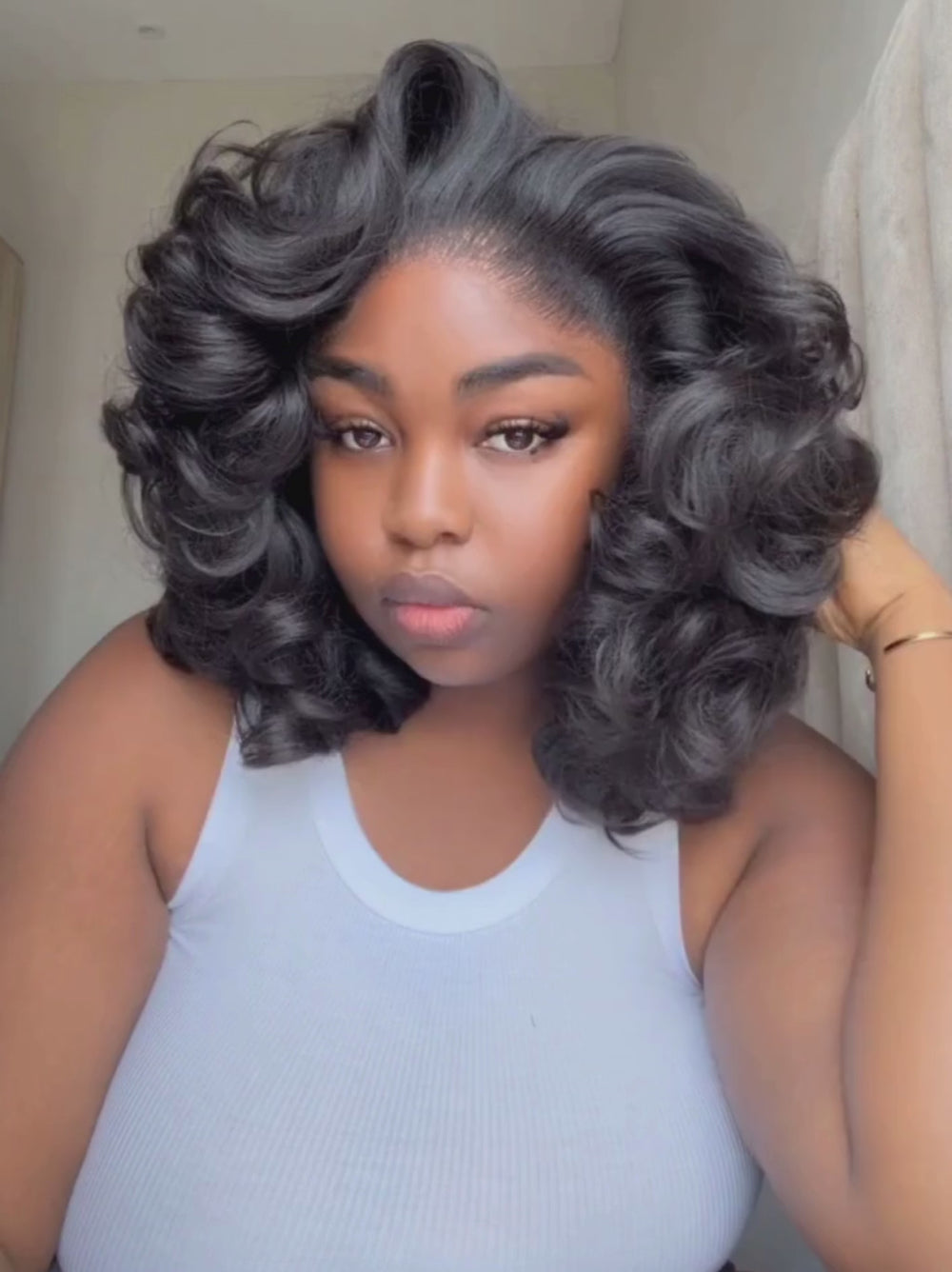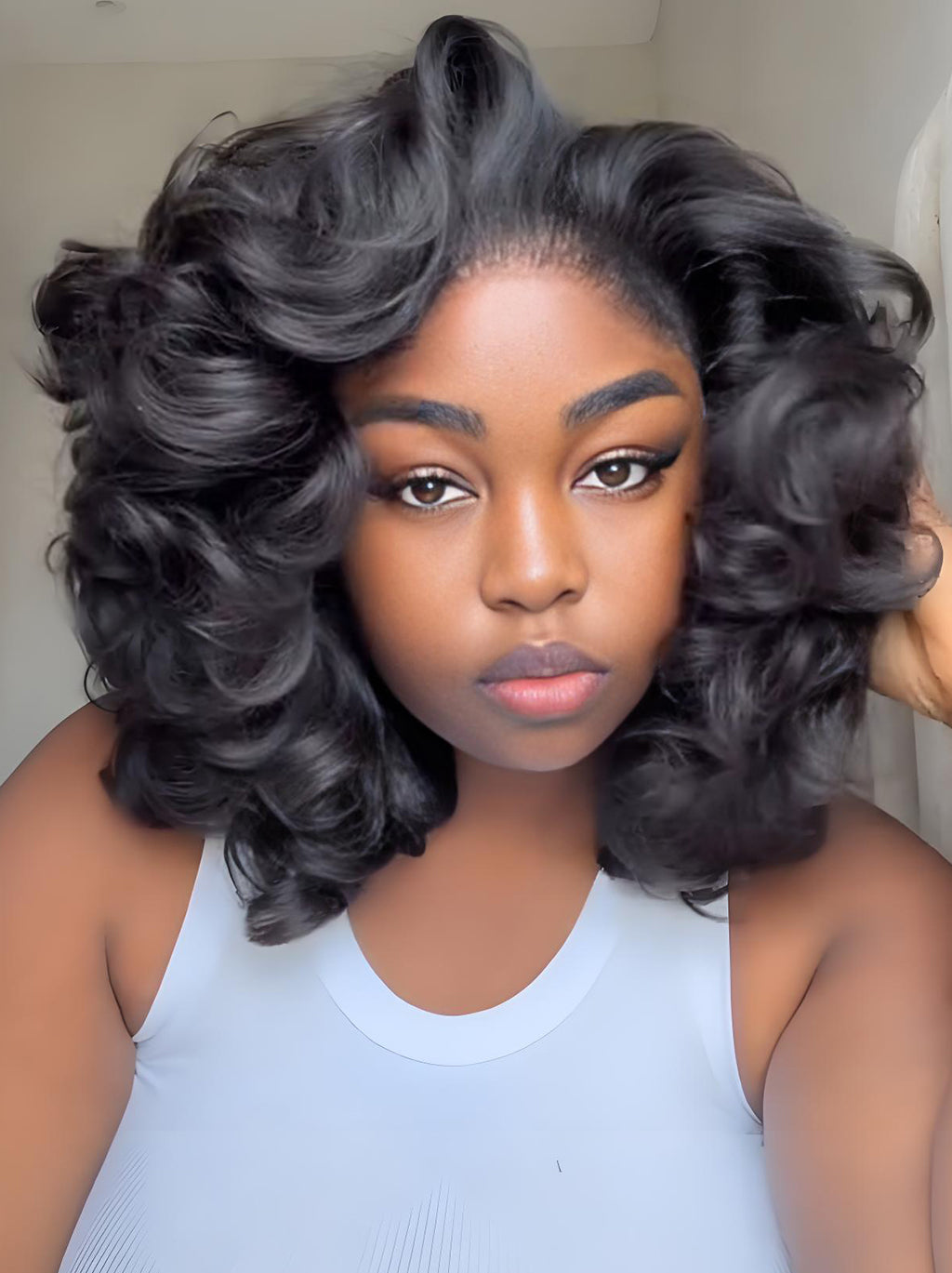 Dorsanee Shoulder Length Bouncy Loose Body Wave 13x4 HD Lace Front Bob Human Hair Wigs