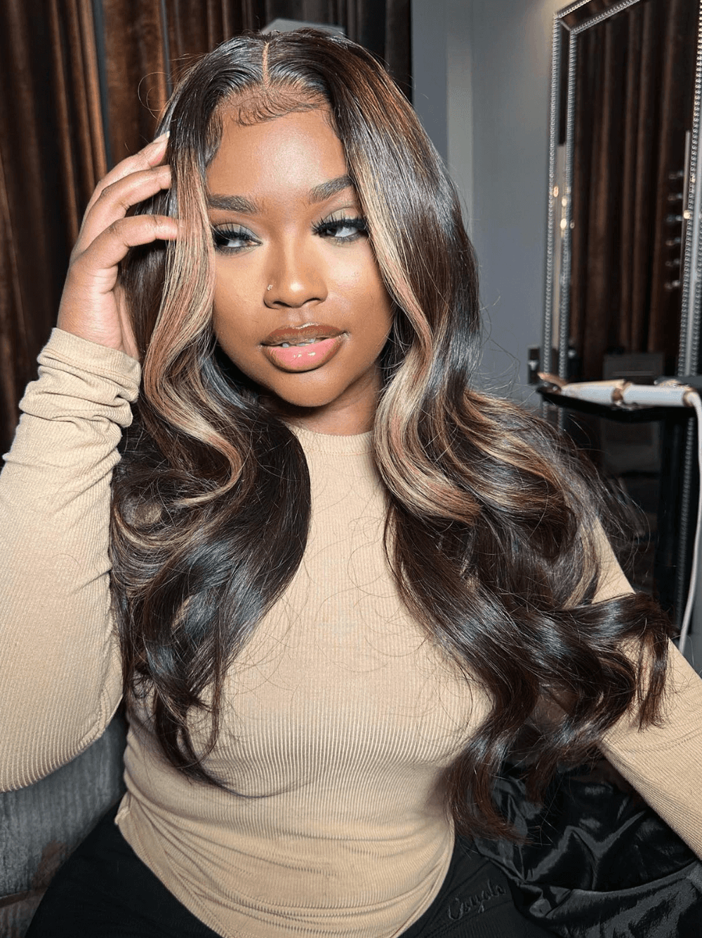 Dorsanee Cinnamon Brown Skunk Stripe Body Wave 13x4 Lace Front Human Hair Wigs