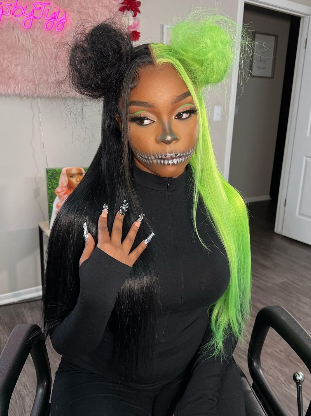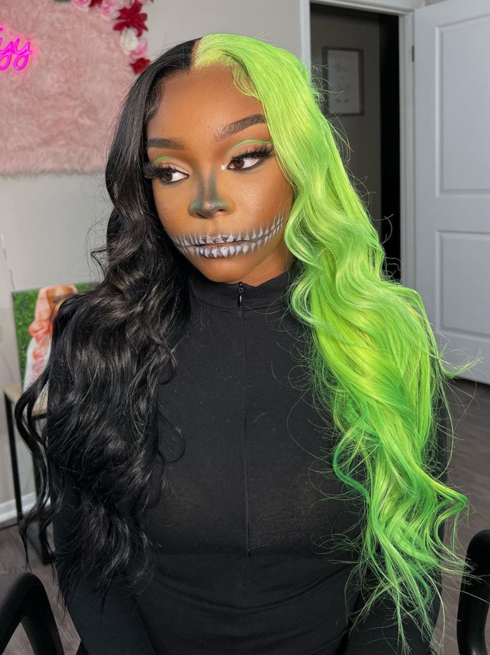 Dorsanee Half Black Half Green Halloween 13x4 Lace Front Straight Body Wave Human Hair Wigs