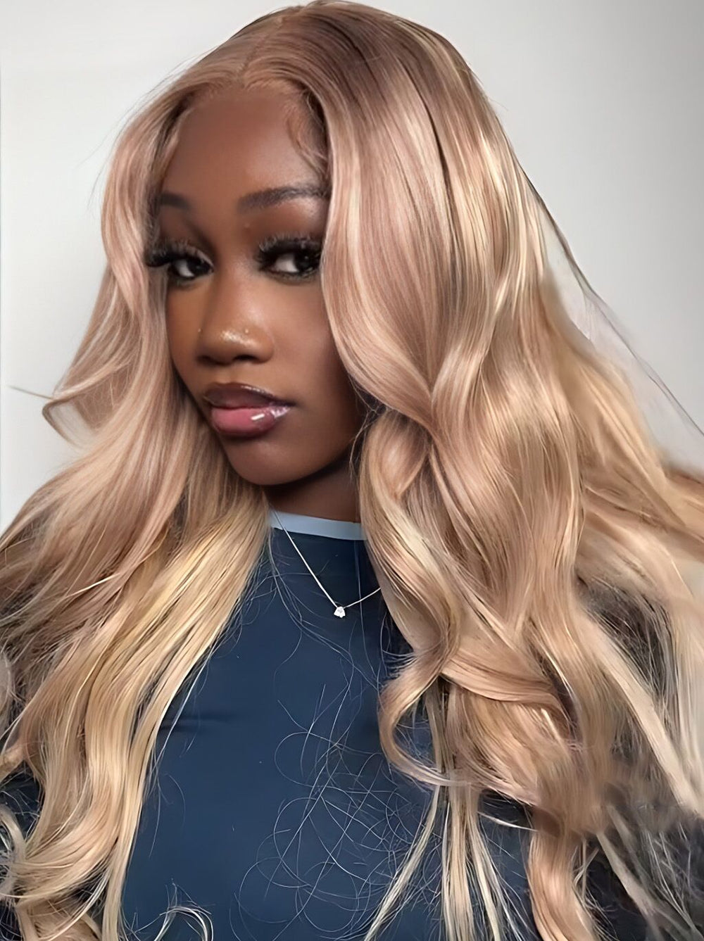 Dorsanee P18/613 Blonde Light Brown Highlight 13x4 Lace Front Straight Human Hair Wigs(bigekane's Pick)