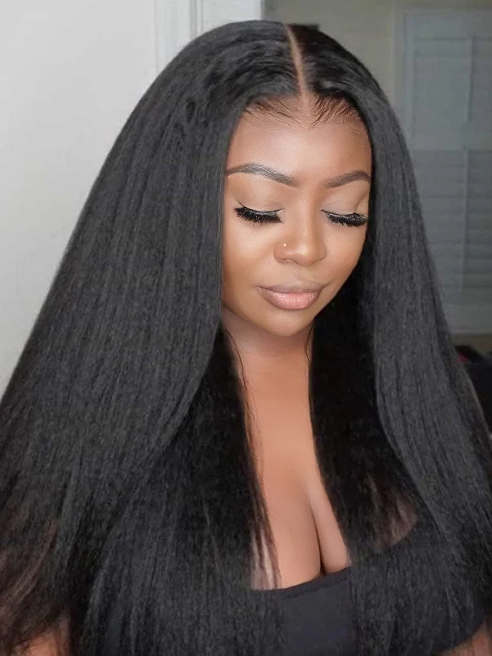 Dorsanee 250 Density Yaki Kinky Straight 4x4 HD Lace Closure Human Hair Wig
