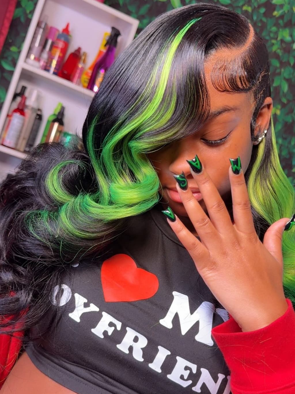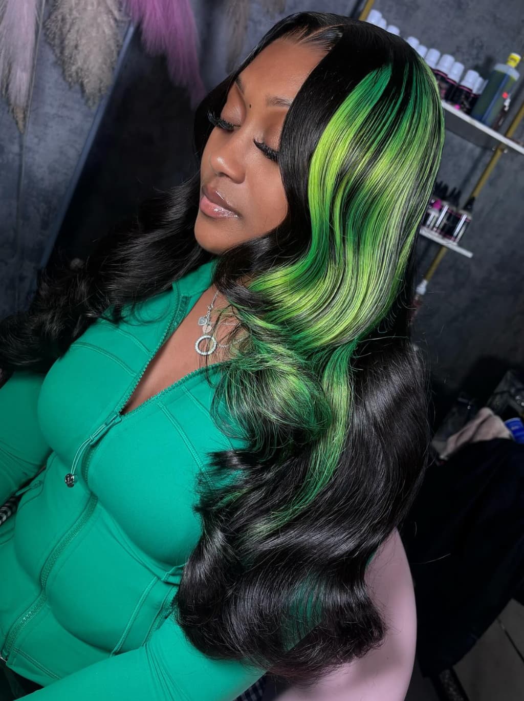 Dorsanee Black With Green Highlights Streaks 13x4 Lace Front Human Hair Wigs
