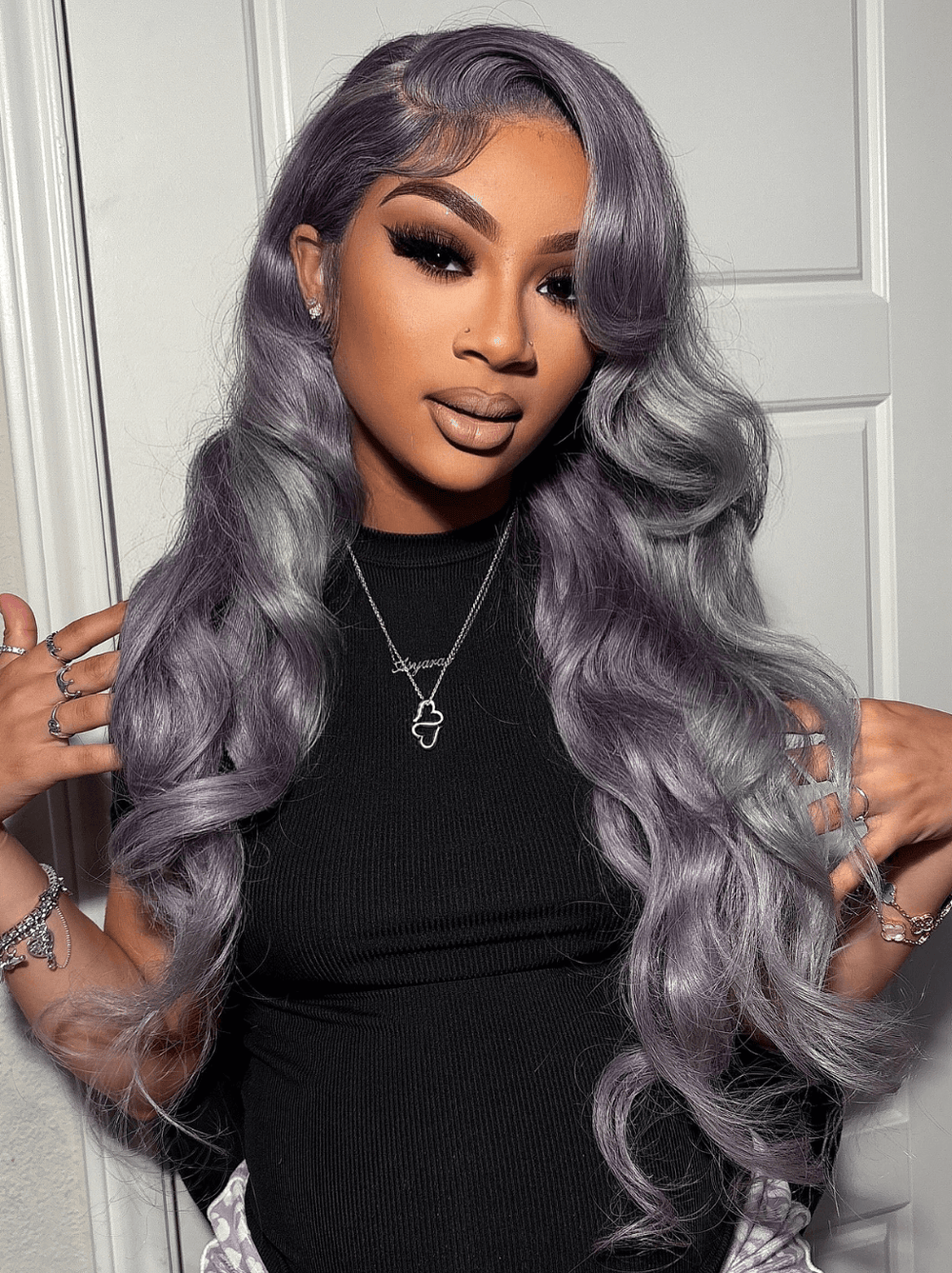 Dorsanee Ash Purple Mauve Gray Body Wave 13x4 Lace Front Virgin Human Hair Wigs