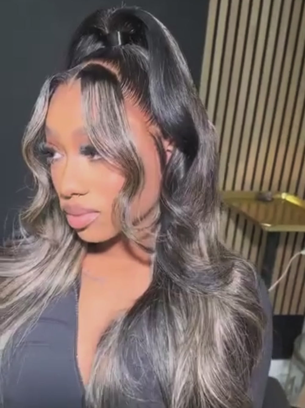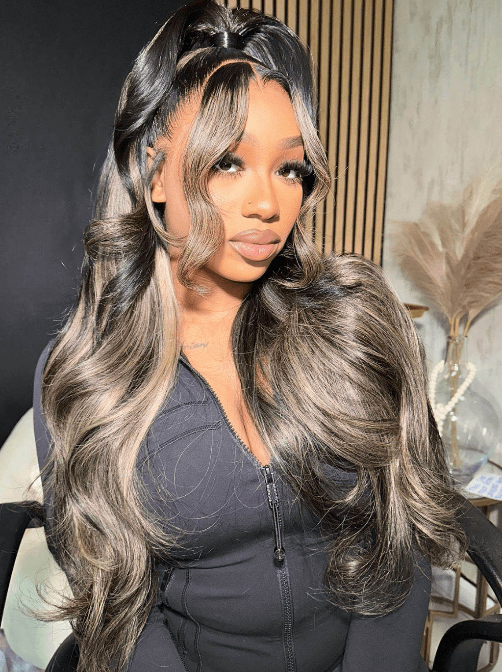 Dorsanee Balayage Black Brown Highlight Streaks Body Wave Lace Front Hair Wigs