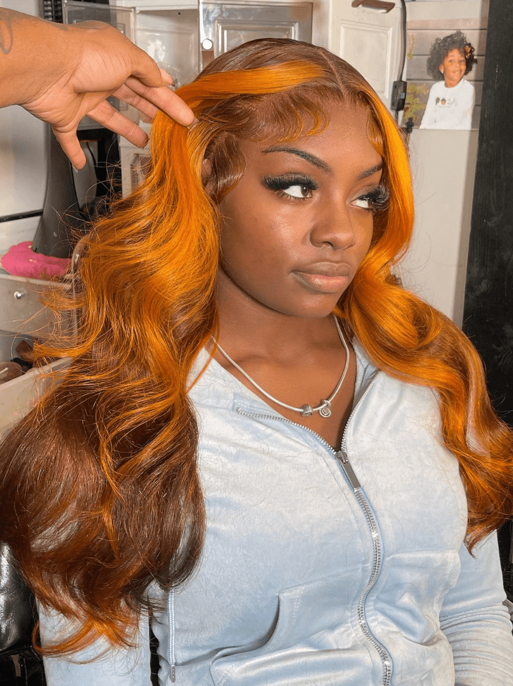 Dorsanee Chocolate Brown Ginger Oranger Skunk Stripe Lace Front Human Hair Wigs