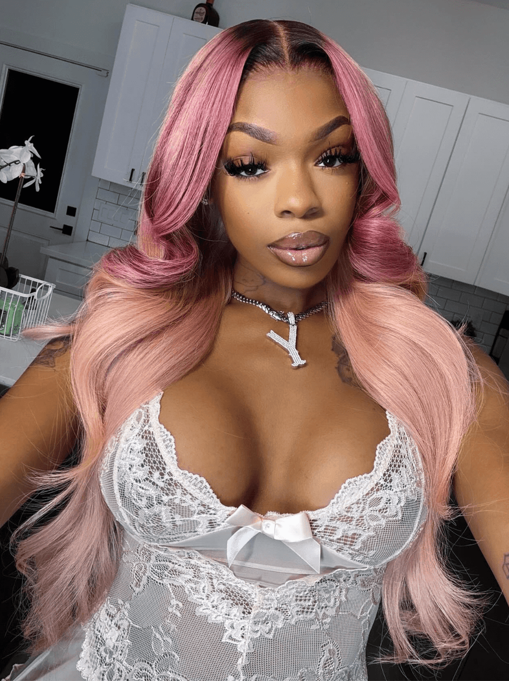 Dorsanee Ombre Purple Peach Pink Dark Roots Color Lace Front Human Hair Wigs