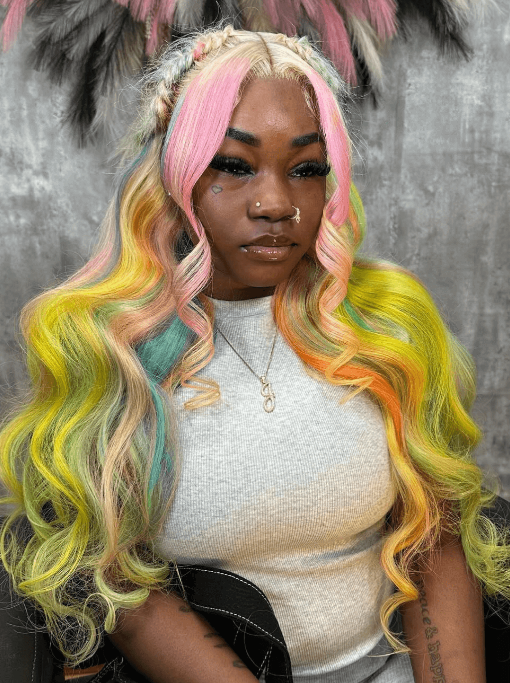 Dorsanee Rainbow Multi Color Pink Yellow Green Blonde Blue Human Hair Wigs