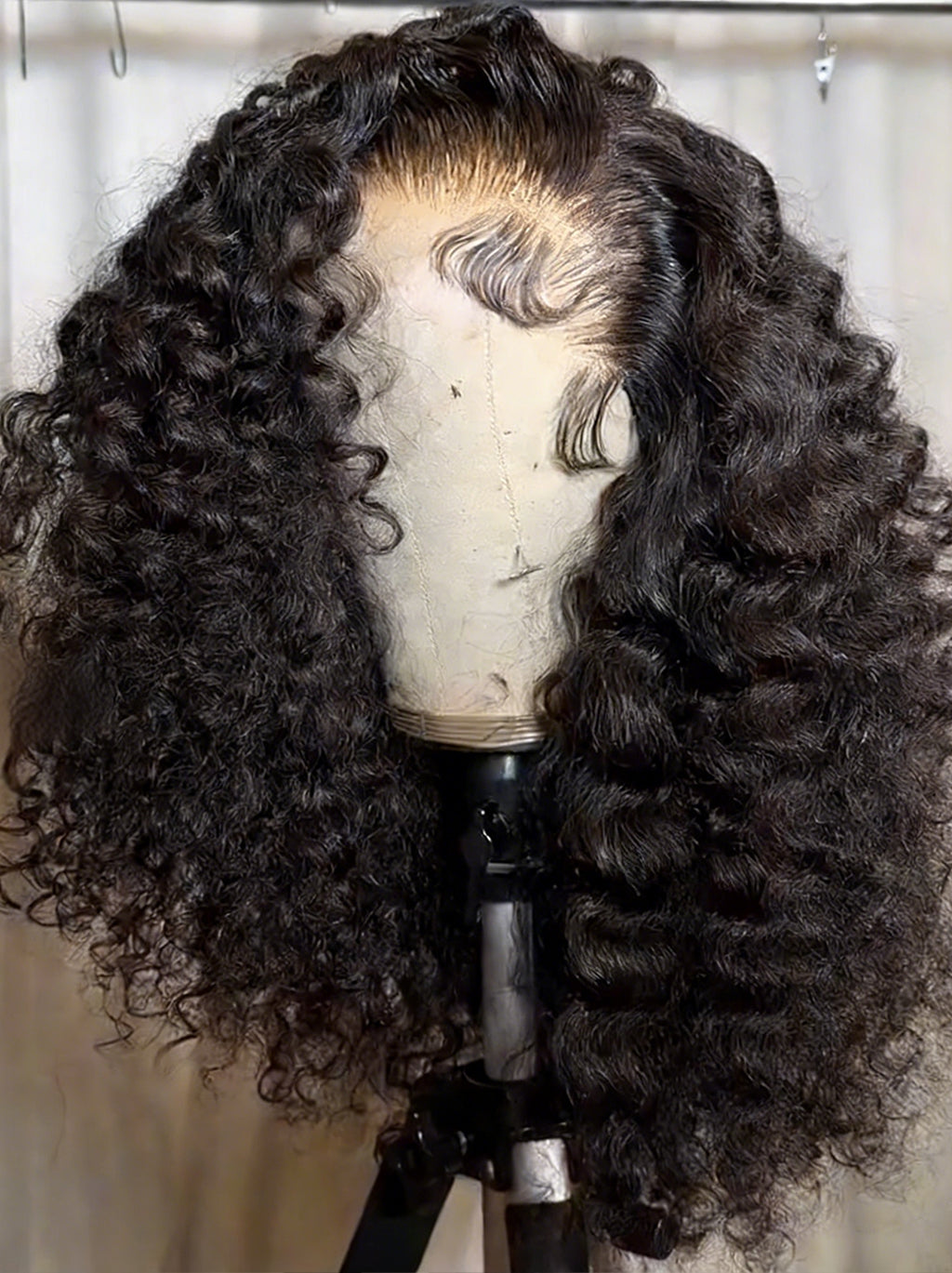 Dorsanee Natural Bouncy Tight Loose Deep Curls Short Bob 13x4 Lace Front Human Hair Wigs