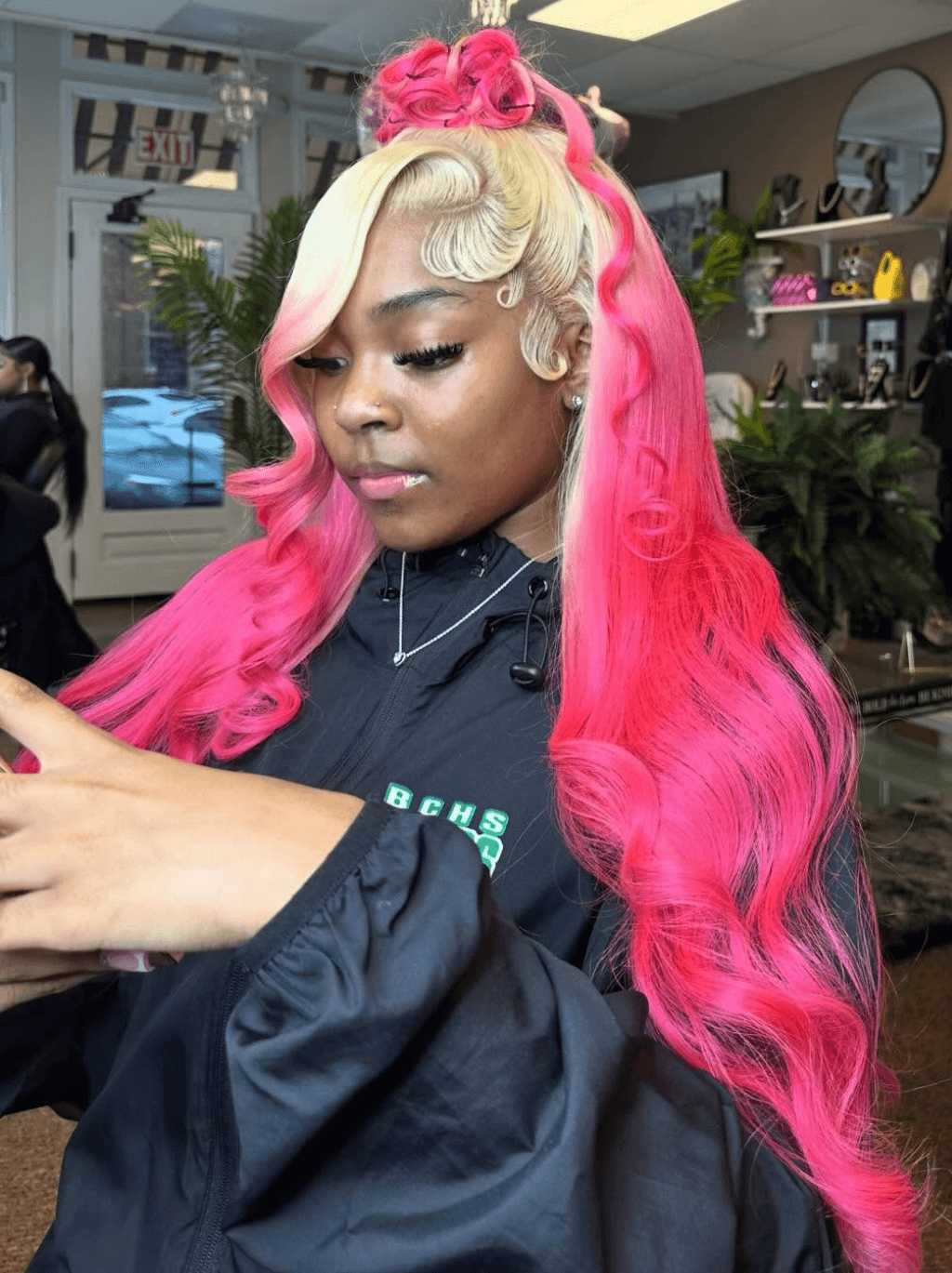 Dorsanee 30 32 inch Buss Down Ombre Blonde Hot Pink Lace Front Human Hair Wig