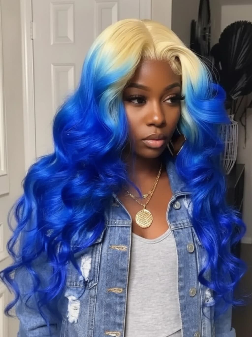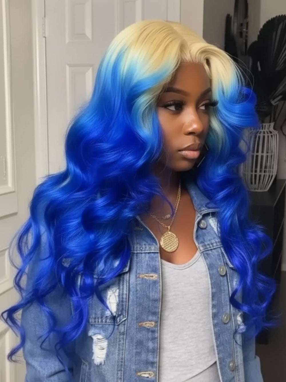 Dorsanee Ombre 613 Blonde Blue 13x4 Lace Front Human Hair Wigs 200 Density