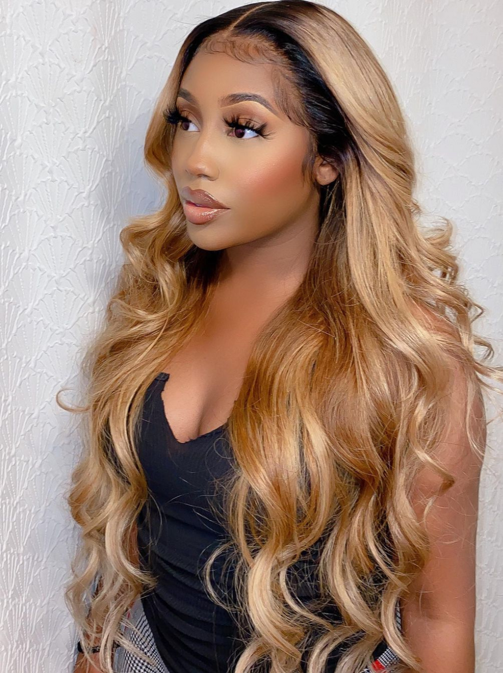 Dorsanee Honey Blonde 13x4 Lace Front Body Wave Hair Wig With Dark Black Roots