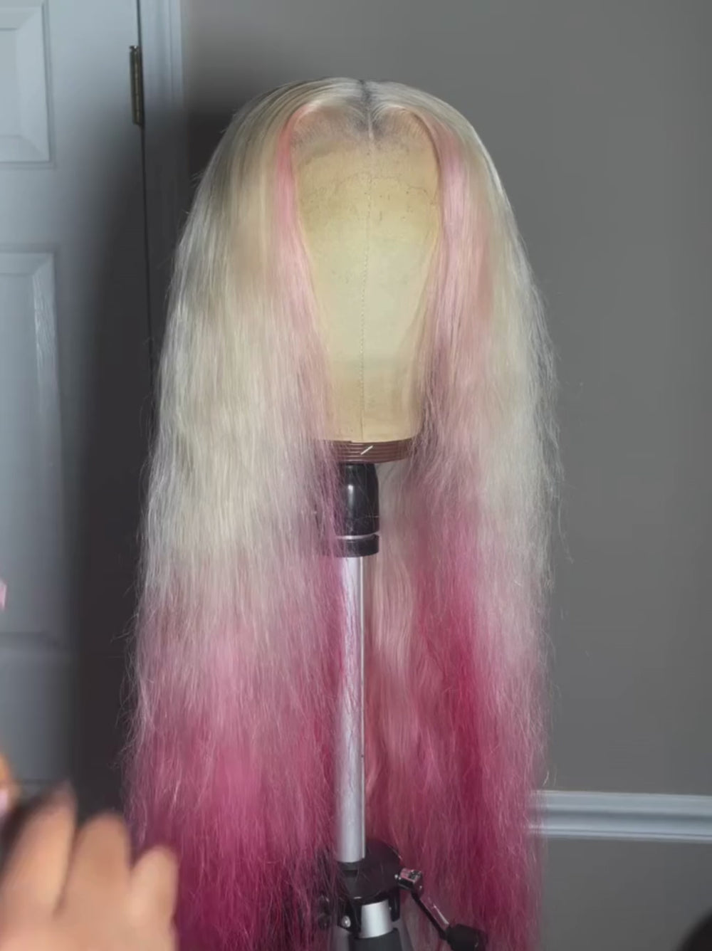Dorsanee Highlights Blonde & Pink Skunk Stripe Colored Body Wave 13x4 Lace Frontal Wig