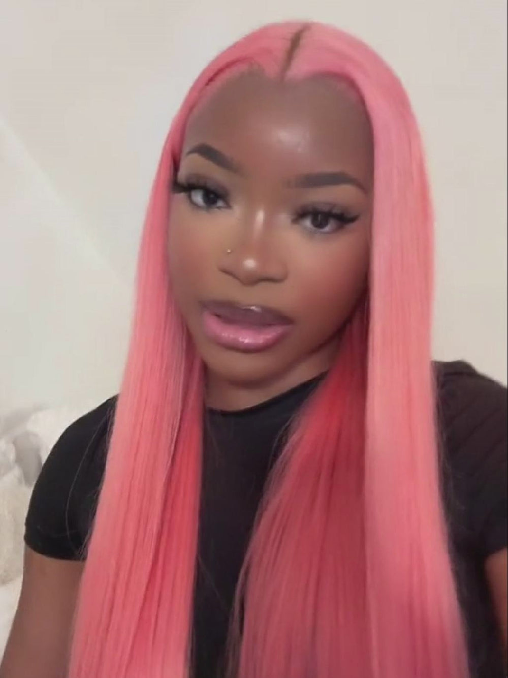 Dorsanee Rose Gold Pink Colored Wig Straight 13x4 Lace Front Human Hair Wigs 200% Density