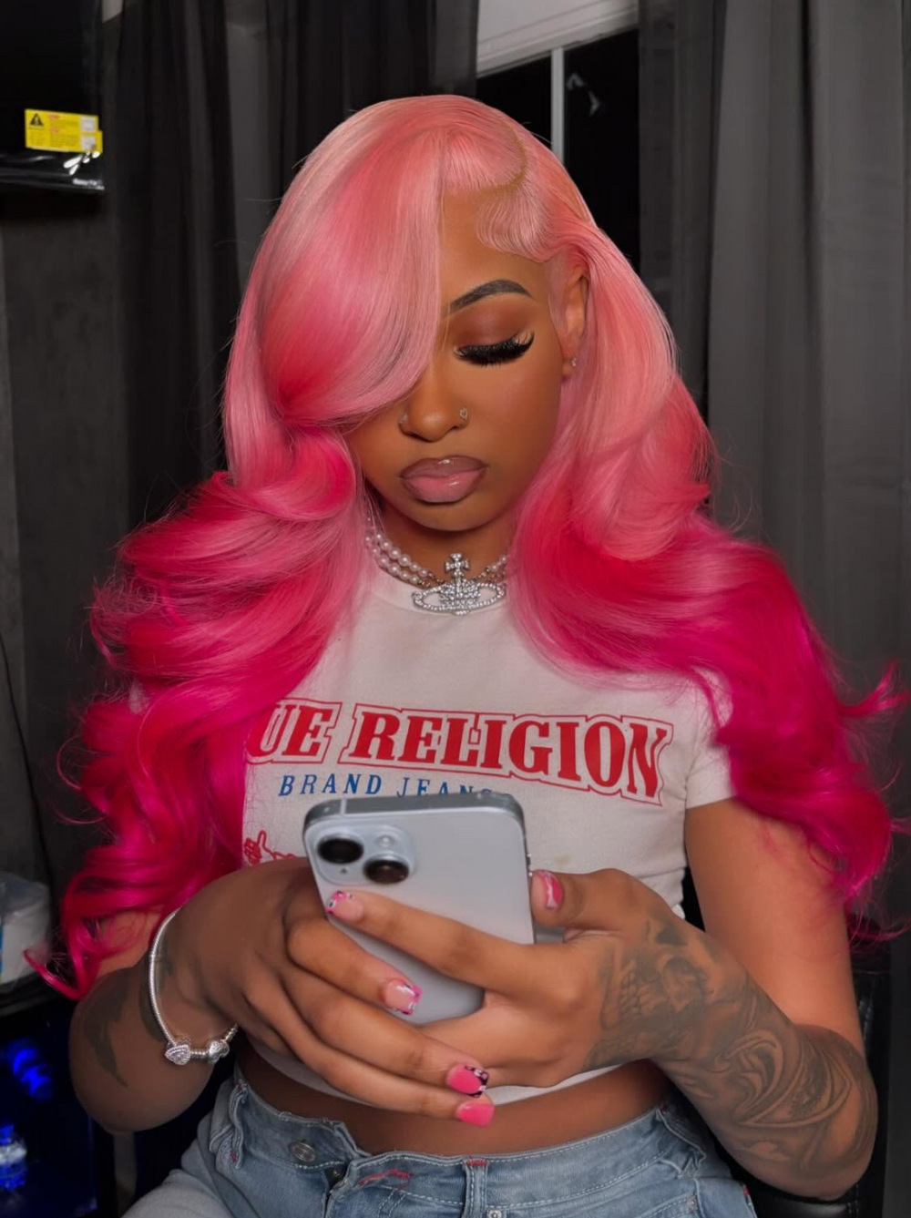Dorsanee Ombre Cotton Candy Pink Dark Rose Pink Two Tone Color Human Hair Wig 200 Density 13x4 Lace Front Human Hair Wigs