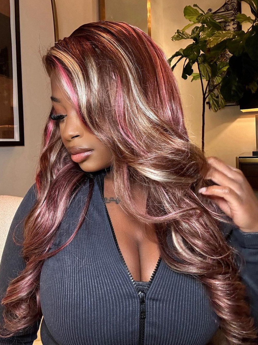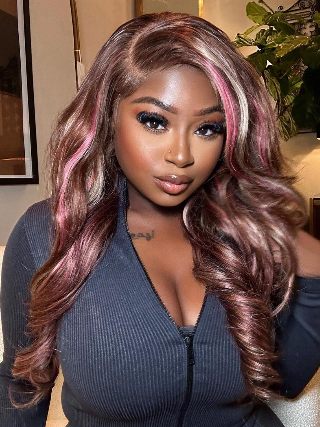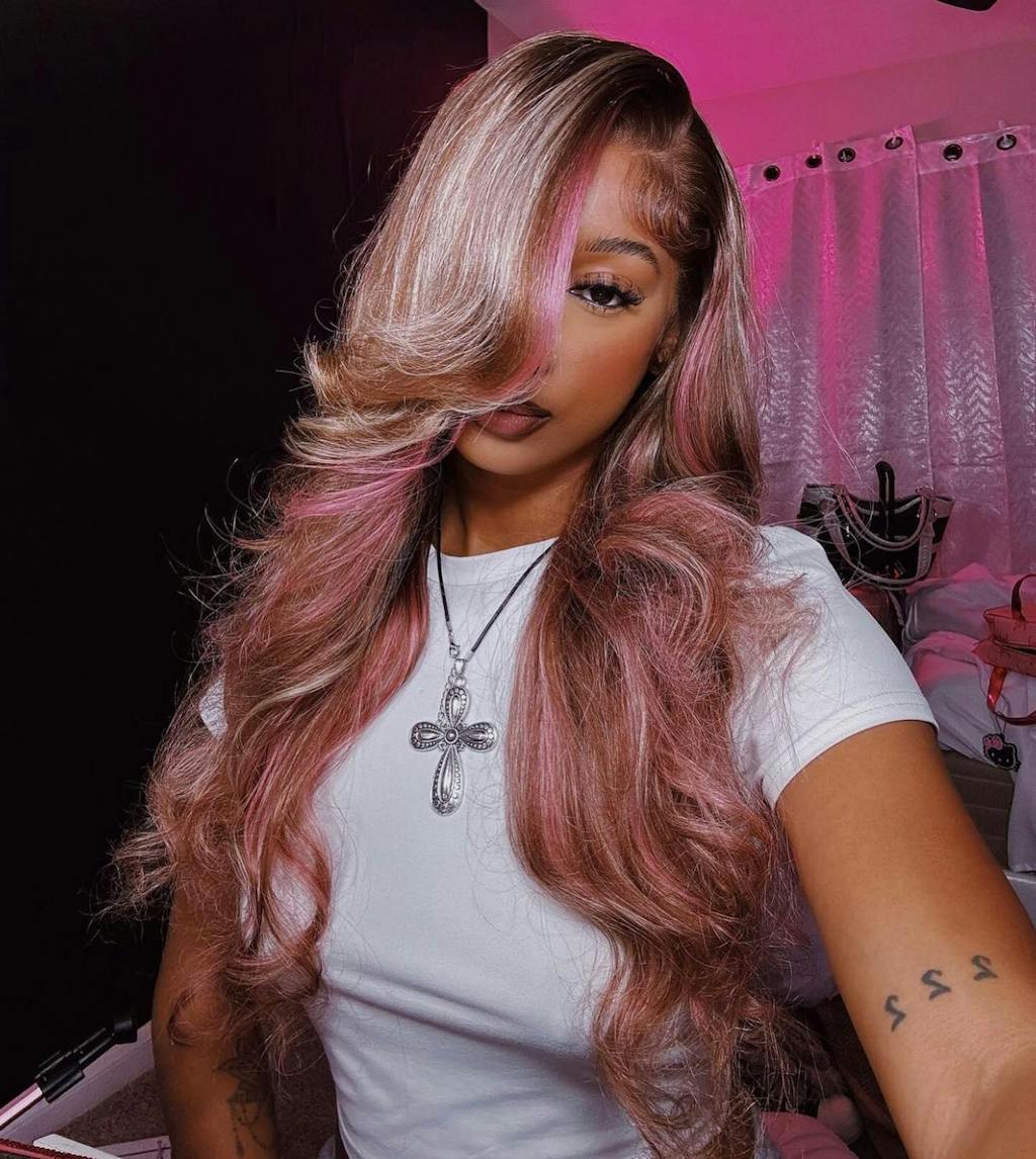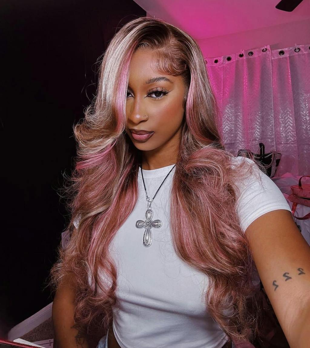 Dorsanee 9x6 M-cap Pink Blonde Brown Highlight Streaks Body Wave Human Hair Wig