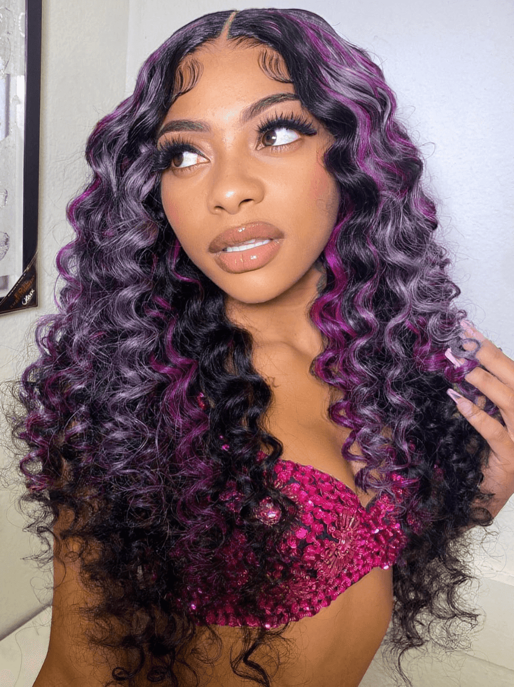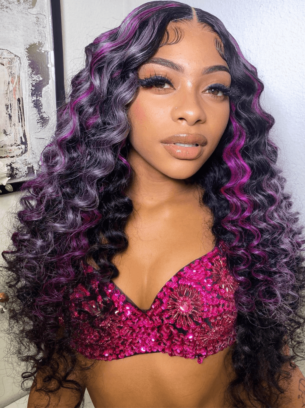 Dorsanee Balayage Purple Lavender Highlight Wand Curl Lace Front Human Hair Wig