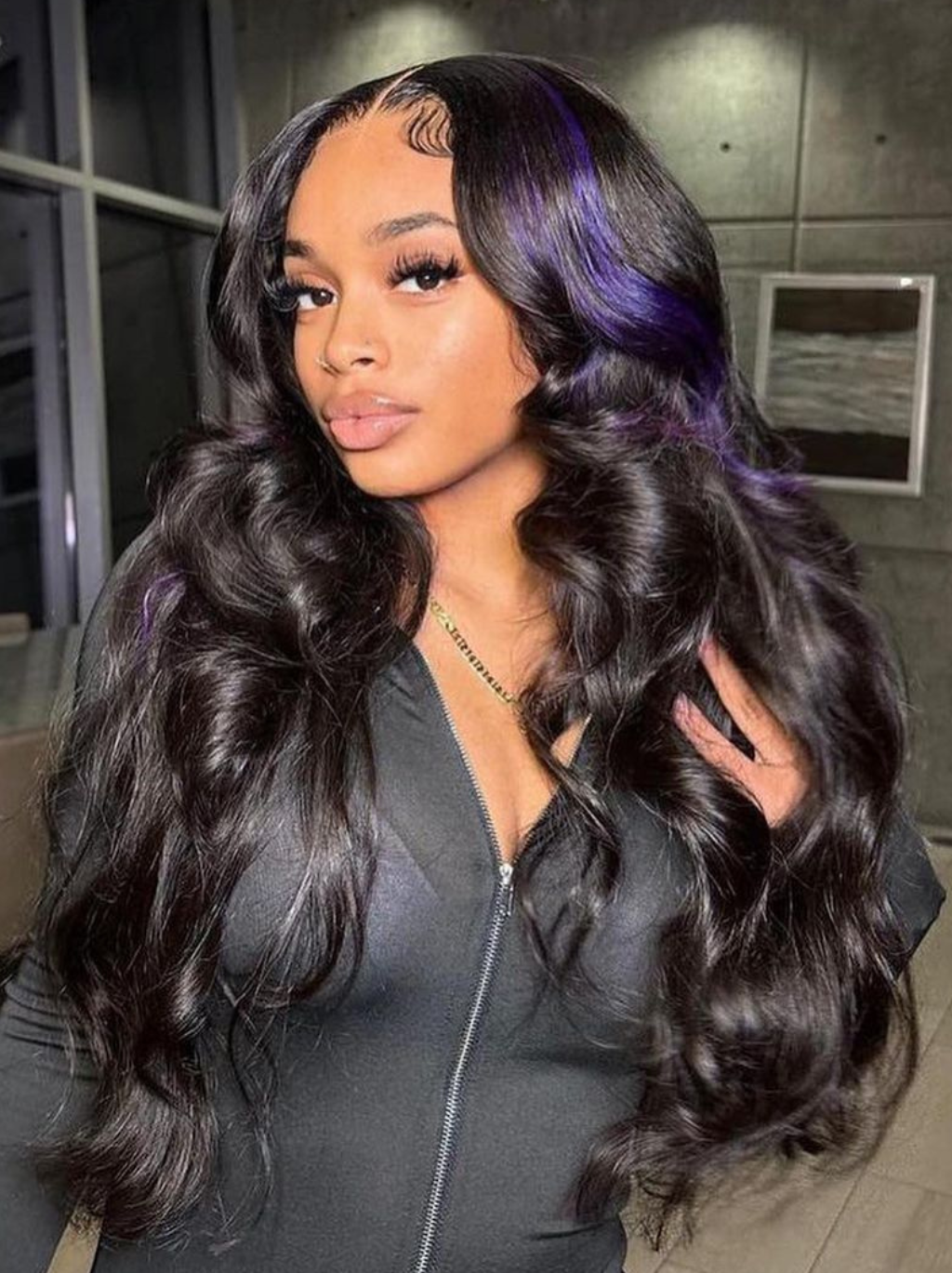 Dorsanee Black Wig With Lavender Purple Streaks 200 Density 13x4 Lace Front Body Wave Human Hair Wigs