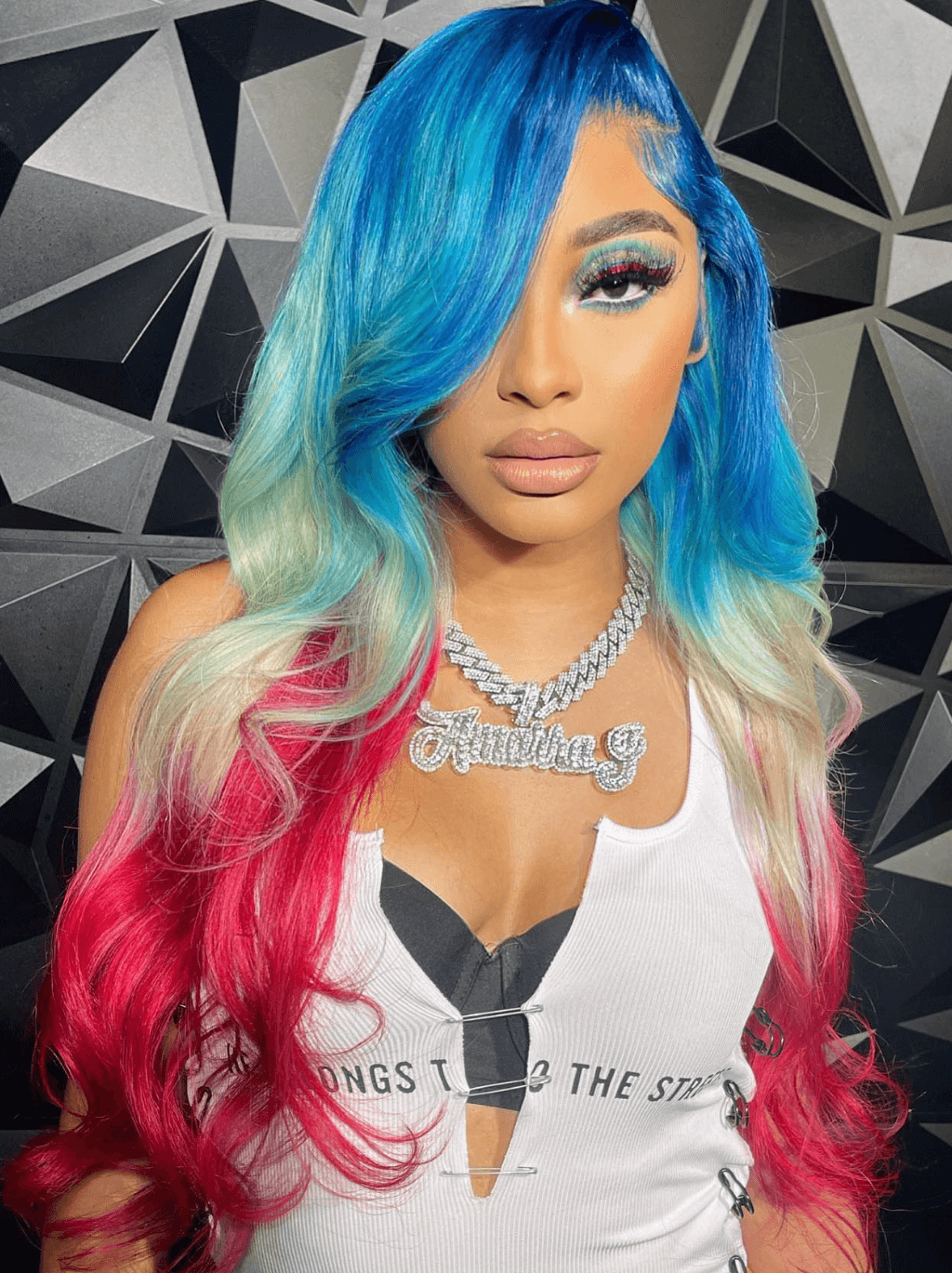 Dorsanee Ombre Blue Blonde Burgundy Red 13x4 Lace Front Human Hair Wigs
