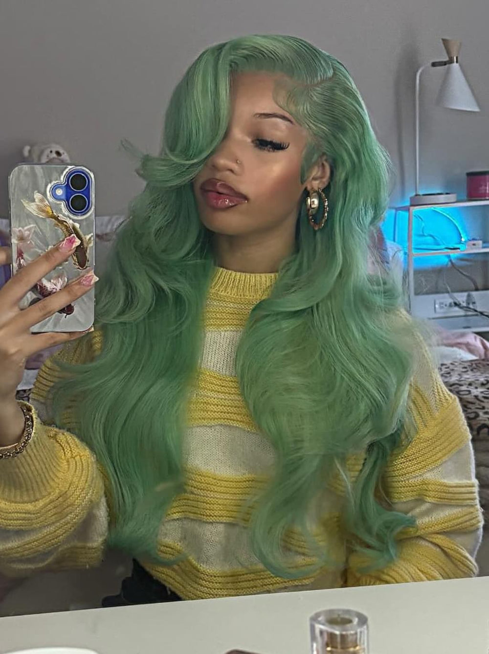 Dorsanee Pastel Teal Green 13x4 Lace Front Virgin Human Hair Wig