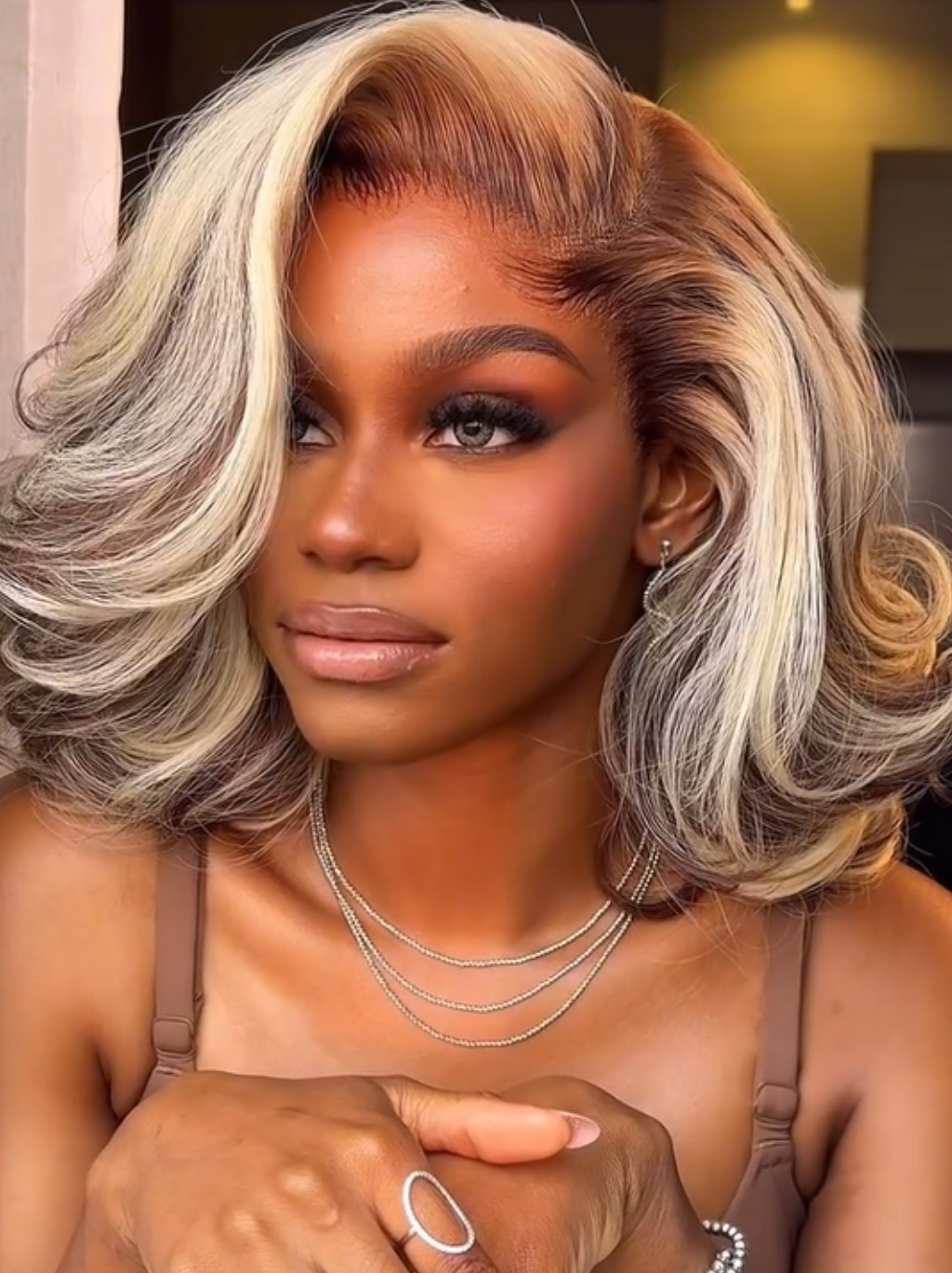 Dorsanee Elegant Blonde Brown Highlight Short Bob Wig 13x4 Lace Front Human Hair Wigs
