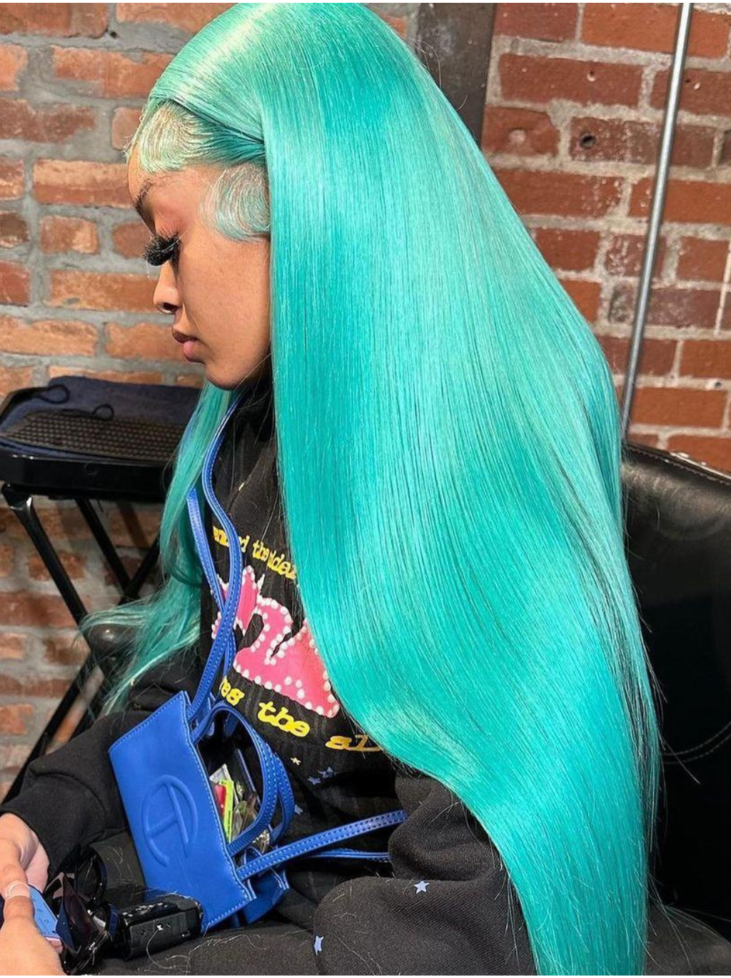 Dorsanee 200 Density Pastel Green 13x4 Lace Front Straight Body Wave Human Hair Wigs