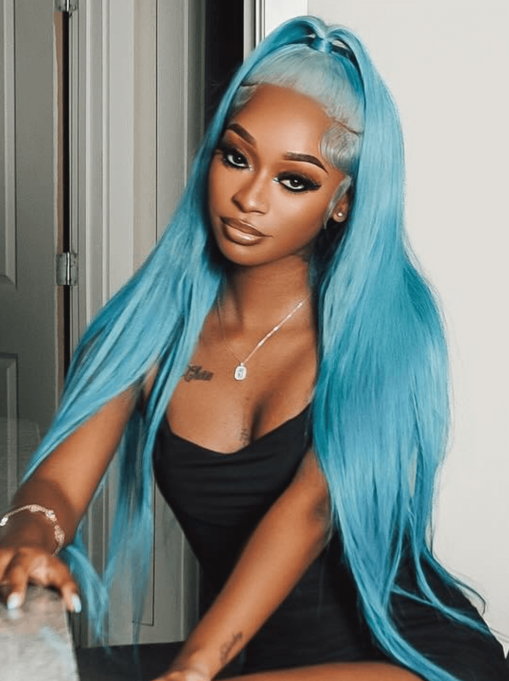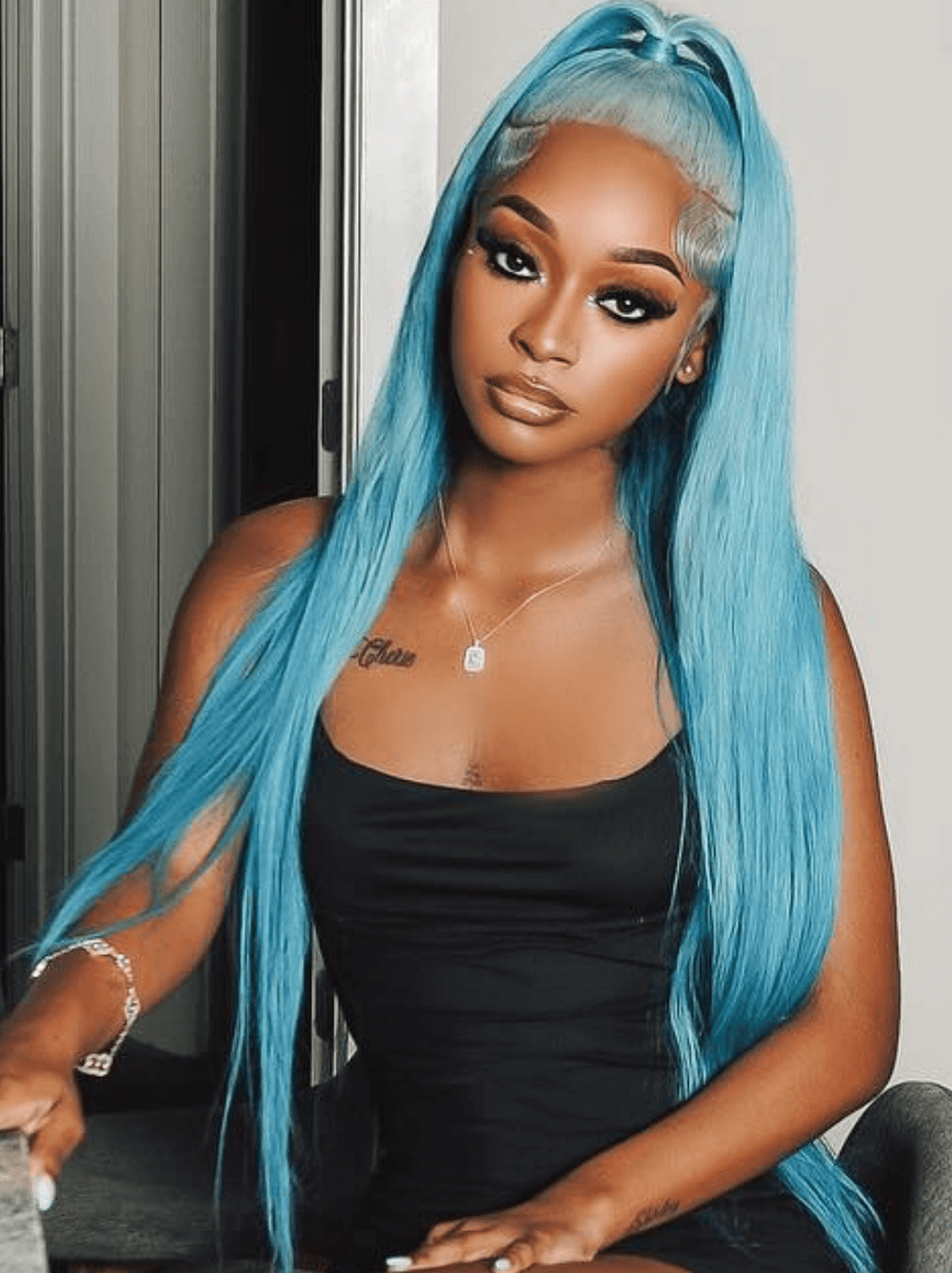 Dorsanee Aqua Blue Bone Straight 13x4 Lace Front Virgin Human Hair Wig