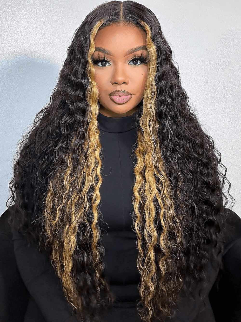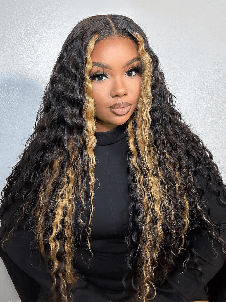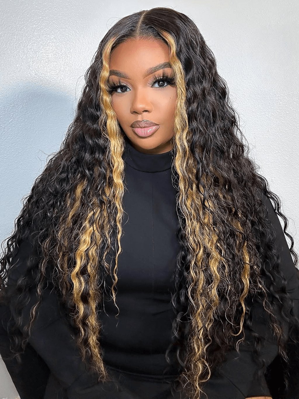Dorsanee Black With Brown Highlights Deep Wave Curly Human Hair Lace Front Wigs