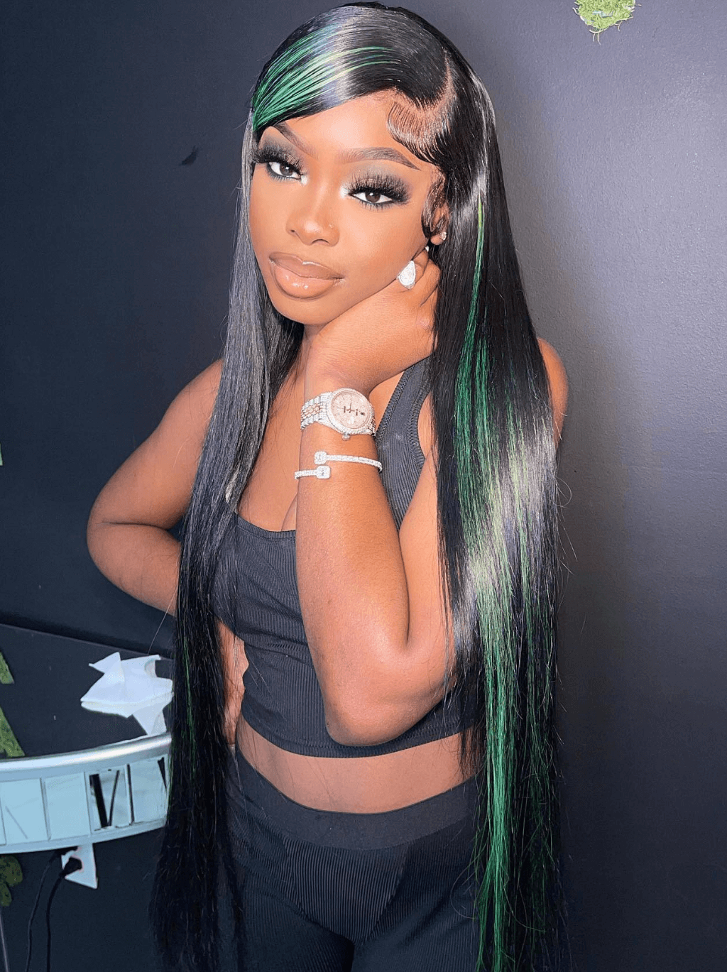 Dorsanee Black With Green Highlight Bone Straight HD Lace Front Human Hair Wig