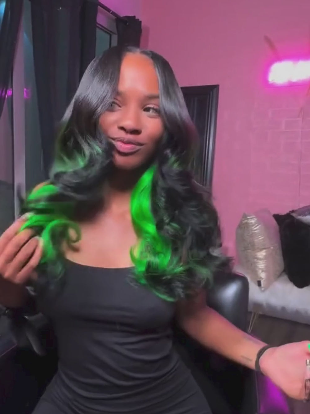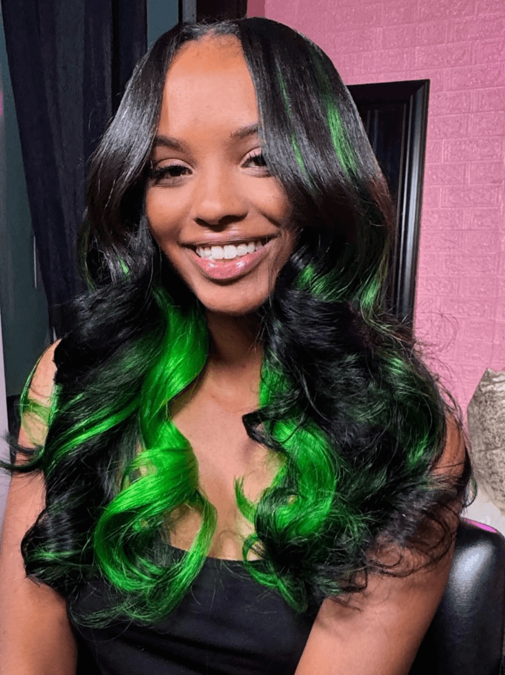 Dorsanee Black With Green Highlight Streaks Lace Front Human Hair Wigs