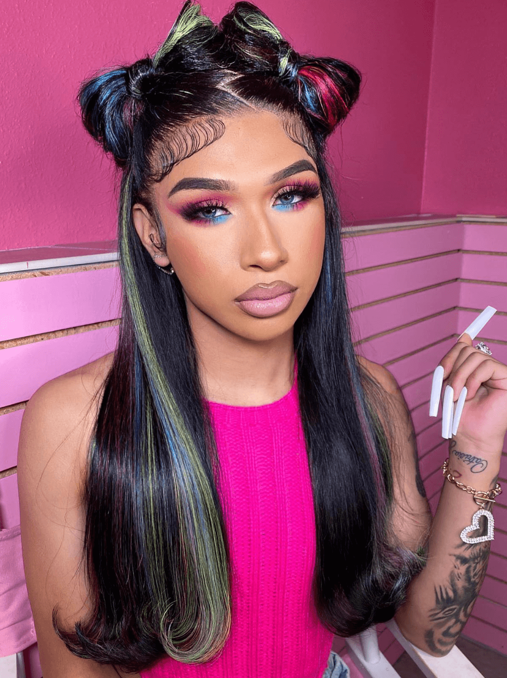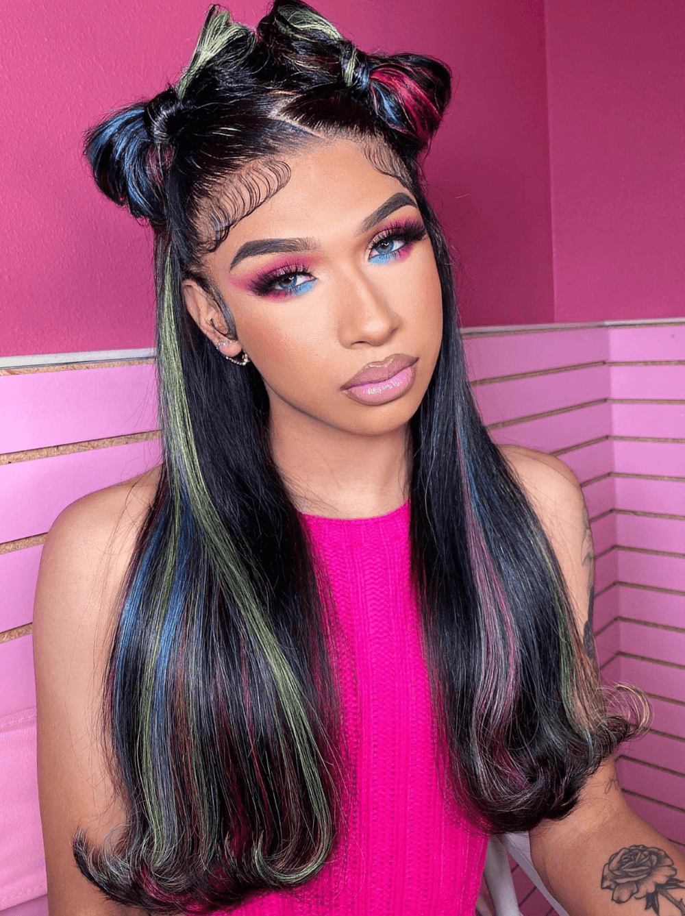Dorsanee Green Blue Purple Red Yellow Highlights Bone Straight Human Hair Wigs