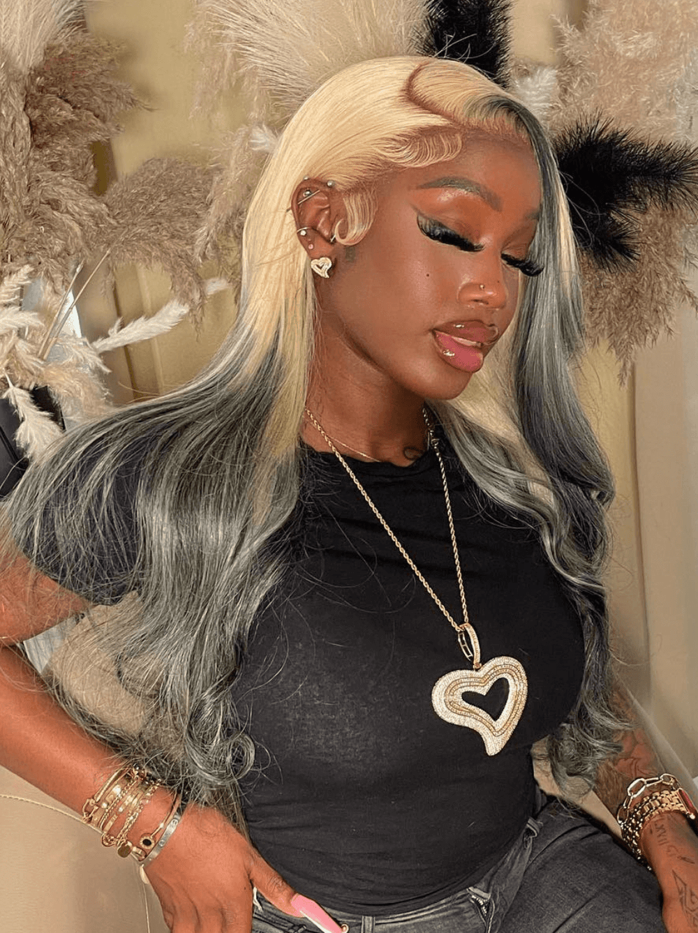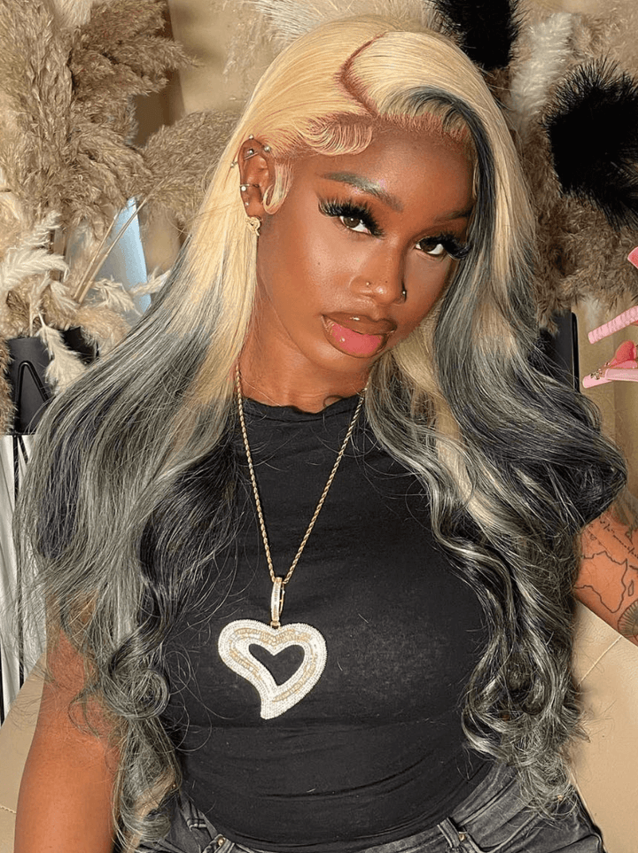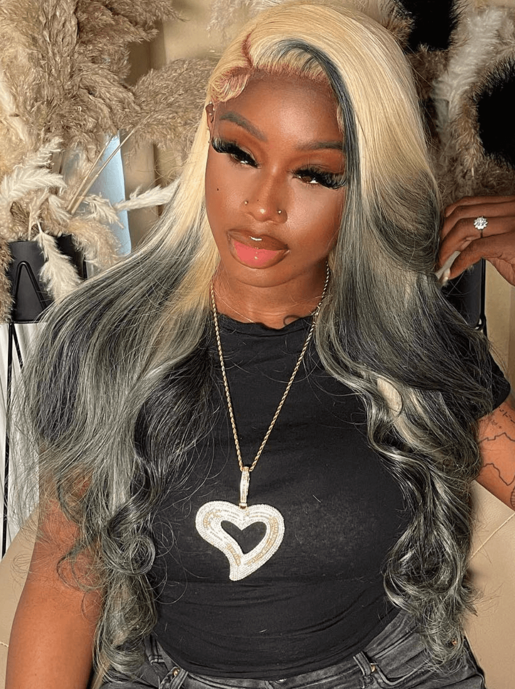 Dorsanee Ombre Blonde Ash Black Gray Skunk Stripe Highlight Lace Front Hair Wig