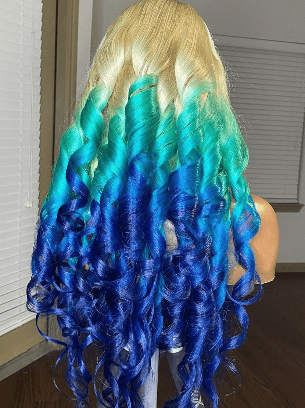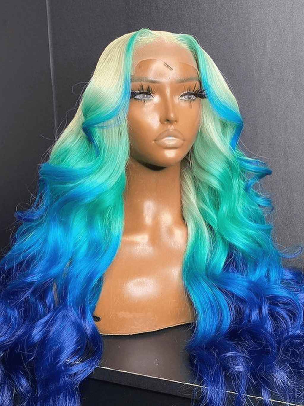 Dorsanee Ombre Blonde Green Blue Skunk Stripe 13x4 Lace Front Human Hair Wigs