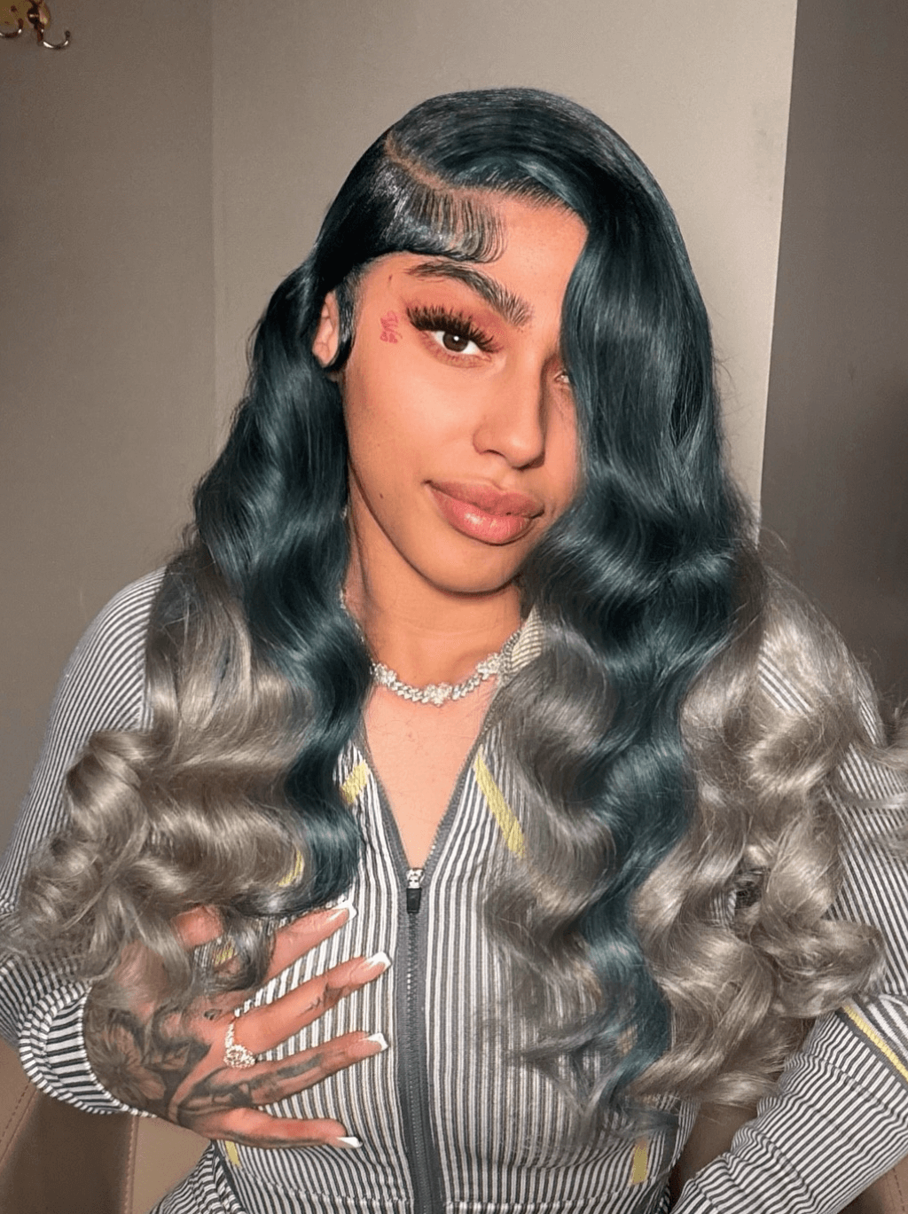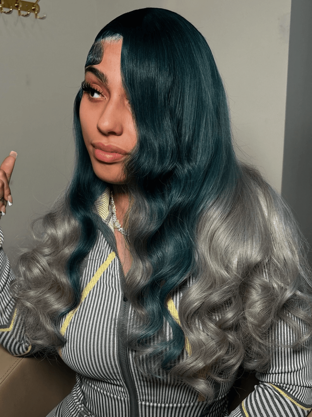Dorsanee Ombre Dark Olive Green Gray Body Wave 13x4 Lace Front Human Hair Wigs