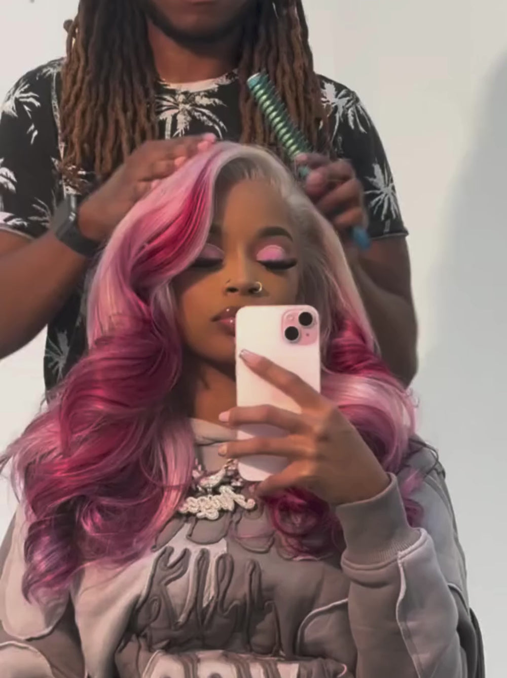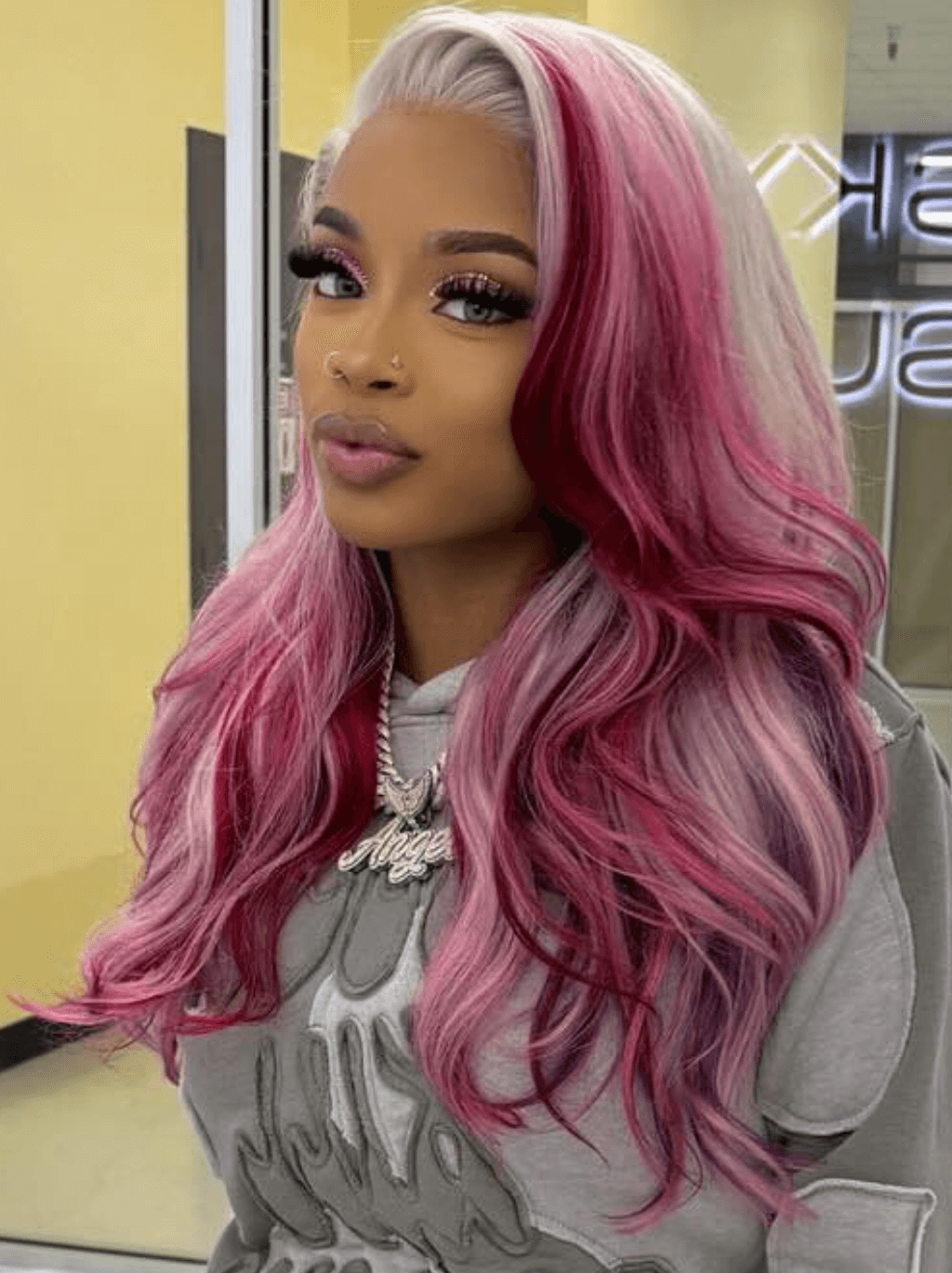 Dorsanee Ombre Gray Purple Red Highlight Transparent Lace Front Human Hair Wig