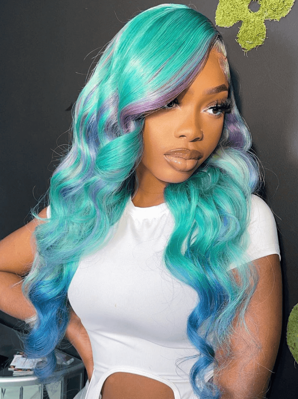 Dorsanee Ombre Pastel Green Blue Purple Skunk Stripe Lace Front Human Hair Wigs