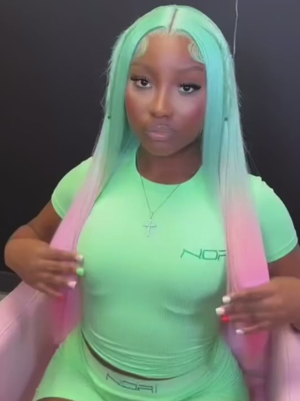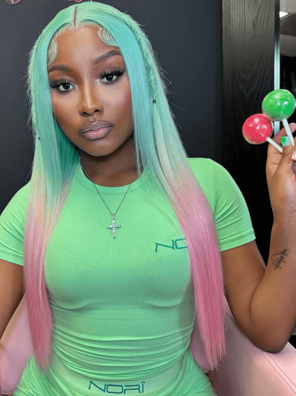 Dorsanee Ombre Pastel Green Pink Bone Straight 13x4 Lace Front Human Hair Wigs