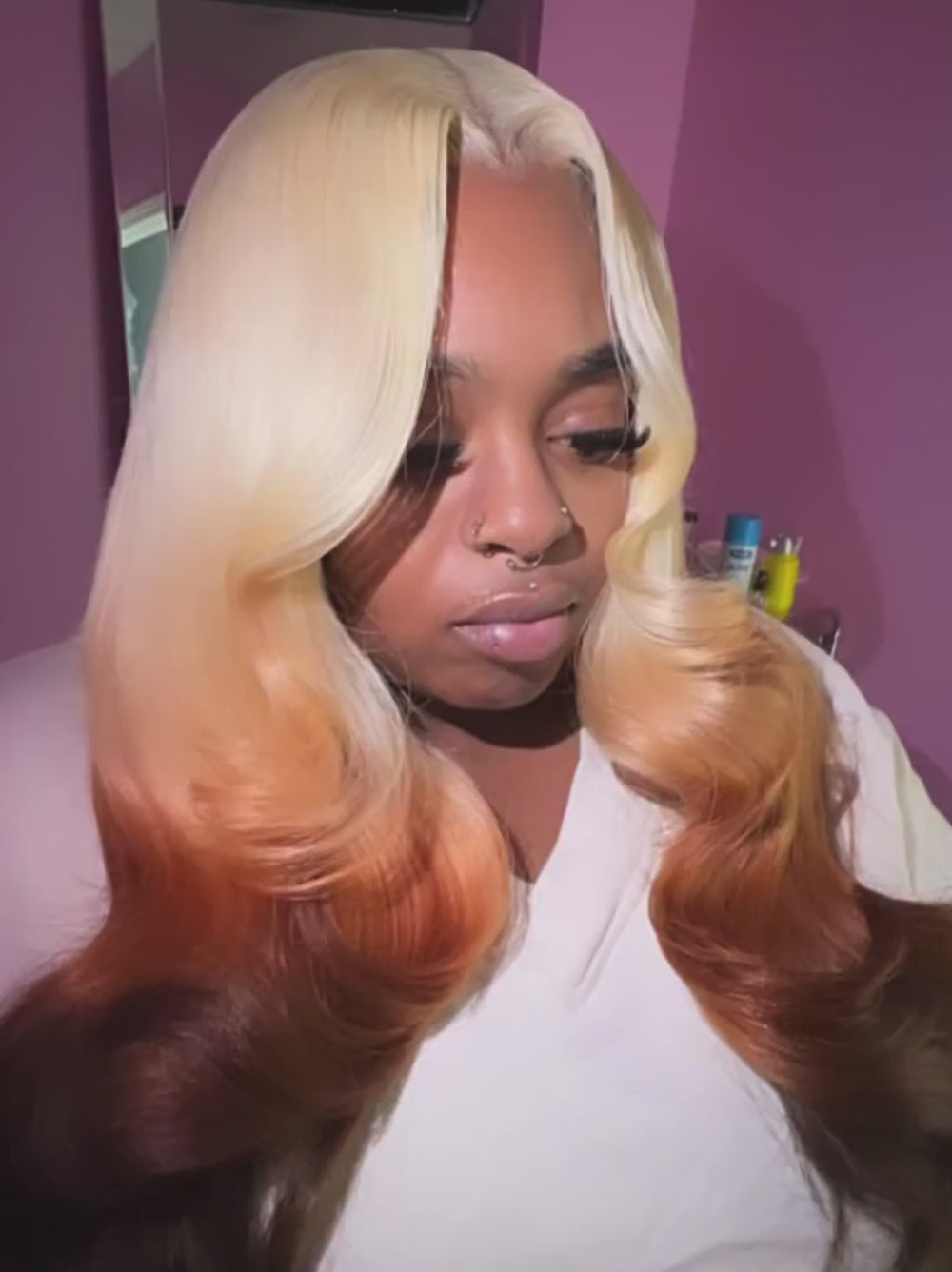 Dorsanee Ombre Platinum Blonde Ginger Chocolate Brown Lace Front Human Hair Wig
