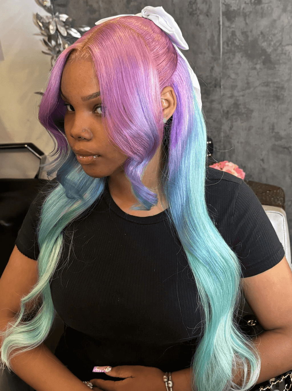 Dorsanee Ombre Purple Blue Pastel Green Body Wave HD Lace Front Human Hair Wigs