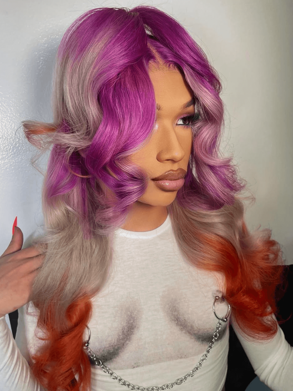 Dorsanee Ombre Purple Gray Ginger Orange Body Wave Lace Front Human Hair Wigs