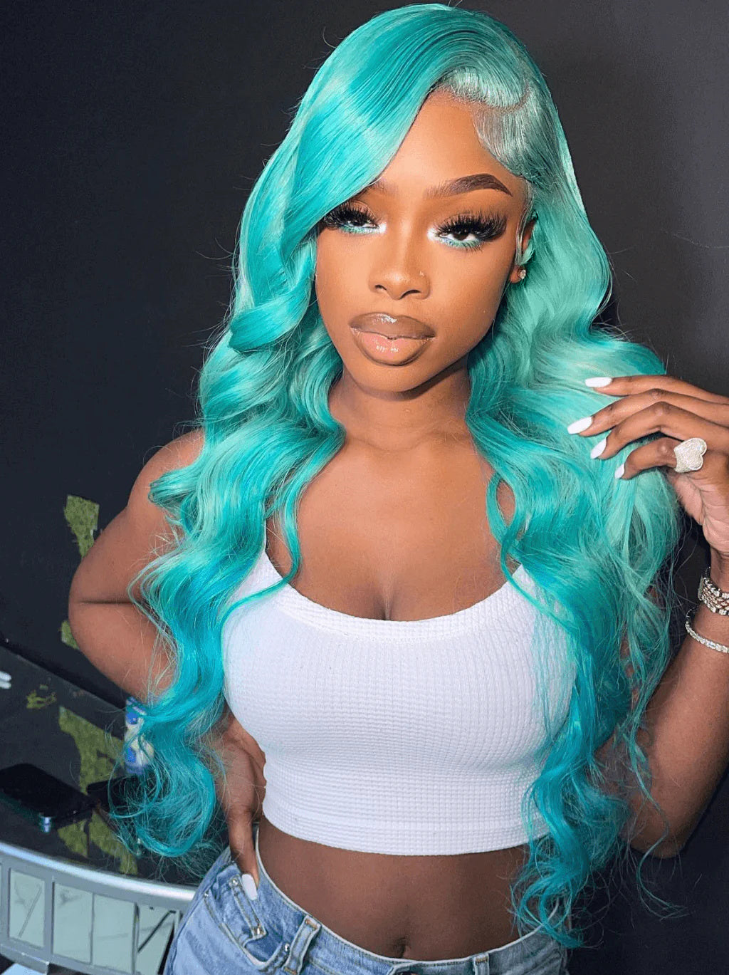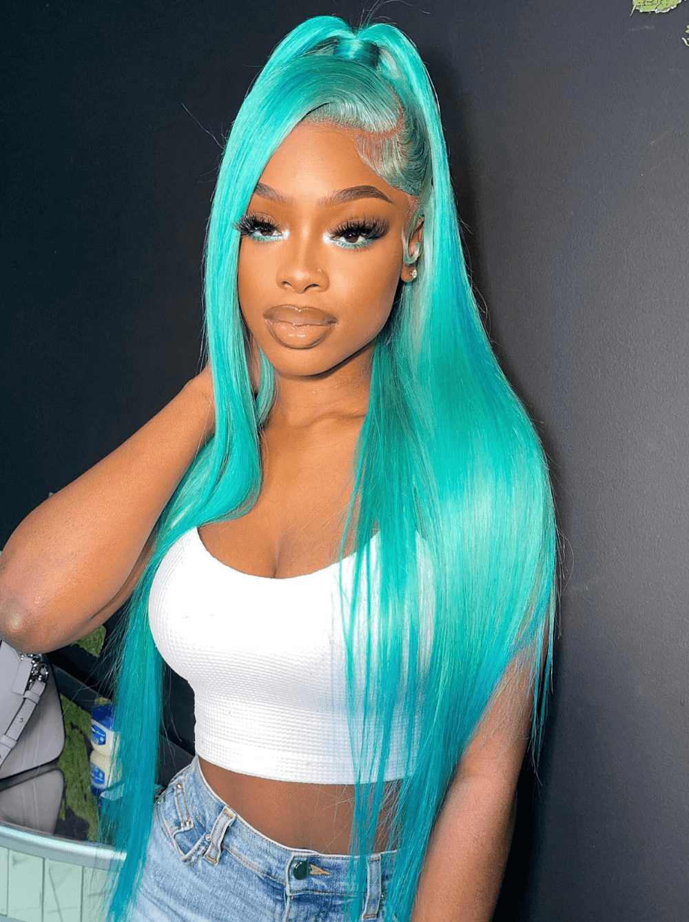 Dorsanee Pastel Light Green Straight Body Wave Lace Front Virgin Human Hair Wig