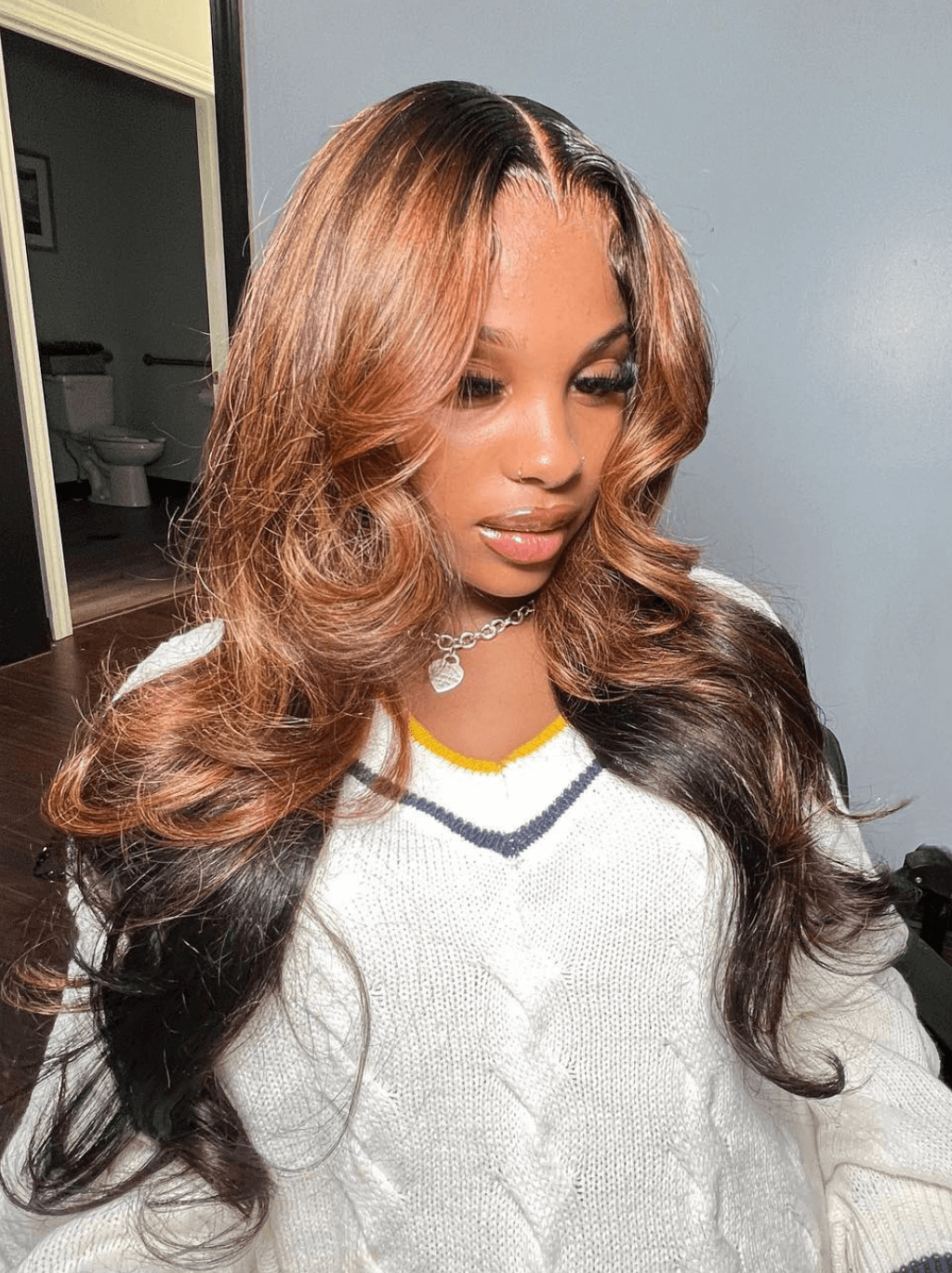 Dorsanee Peekaboo Brown Natural Black Body Wave 13x4 Lace Front Virgin Hair Wig