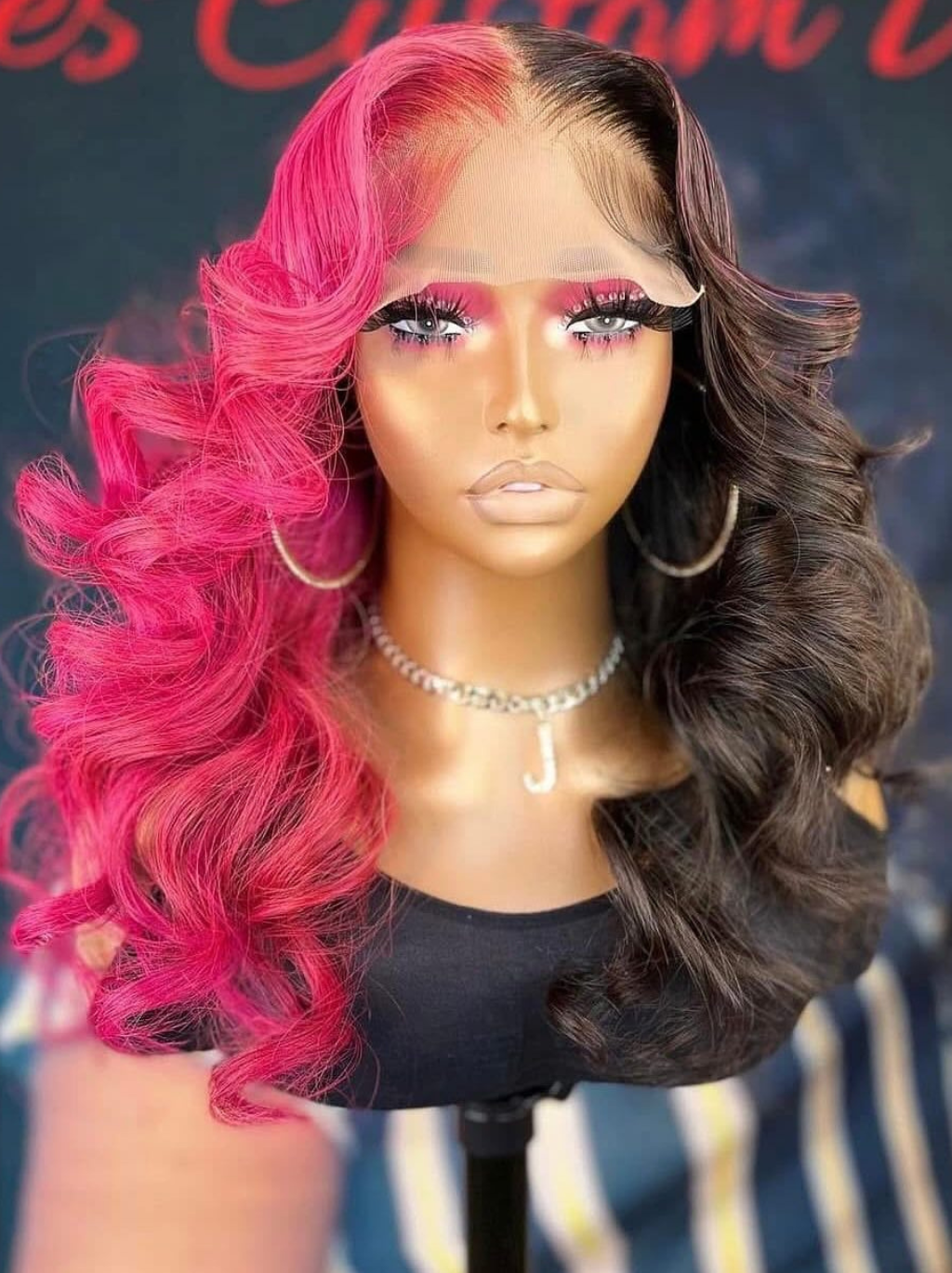 Dorsanee Split Dye Half Black Half Red 200 Density 13x4 Lace Front Human Hair Wigs
