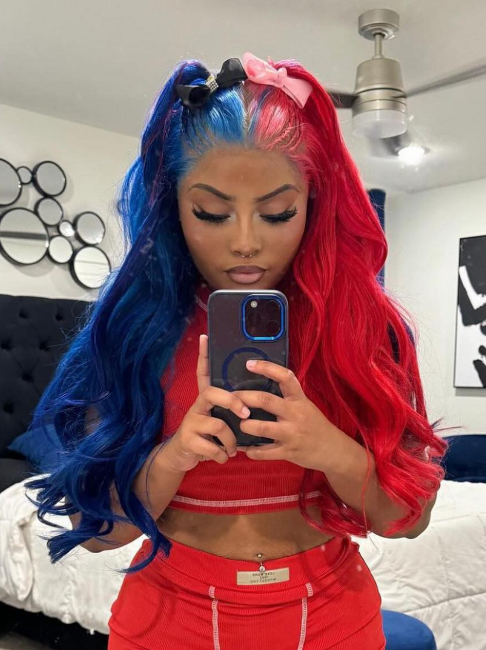 Dorsanee Split Dye Half Red Half Blue 13x4 Lace Front Human Hair Wigs 200 Density