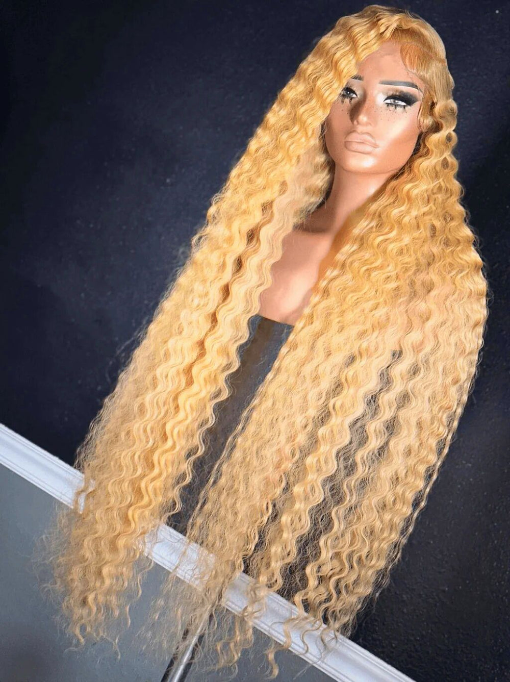 Dorsanee Platinum Strwberry Honey Blonde Deep Wave Curly Lace Front Hair Wigs