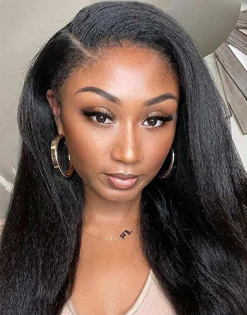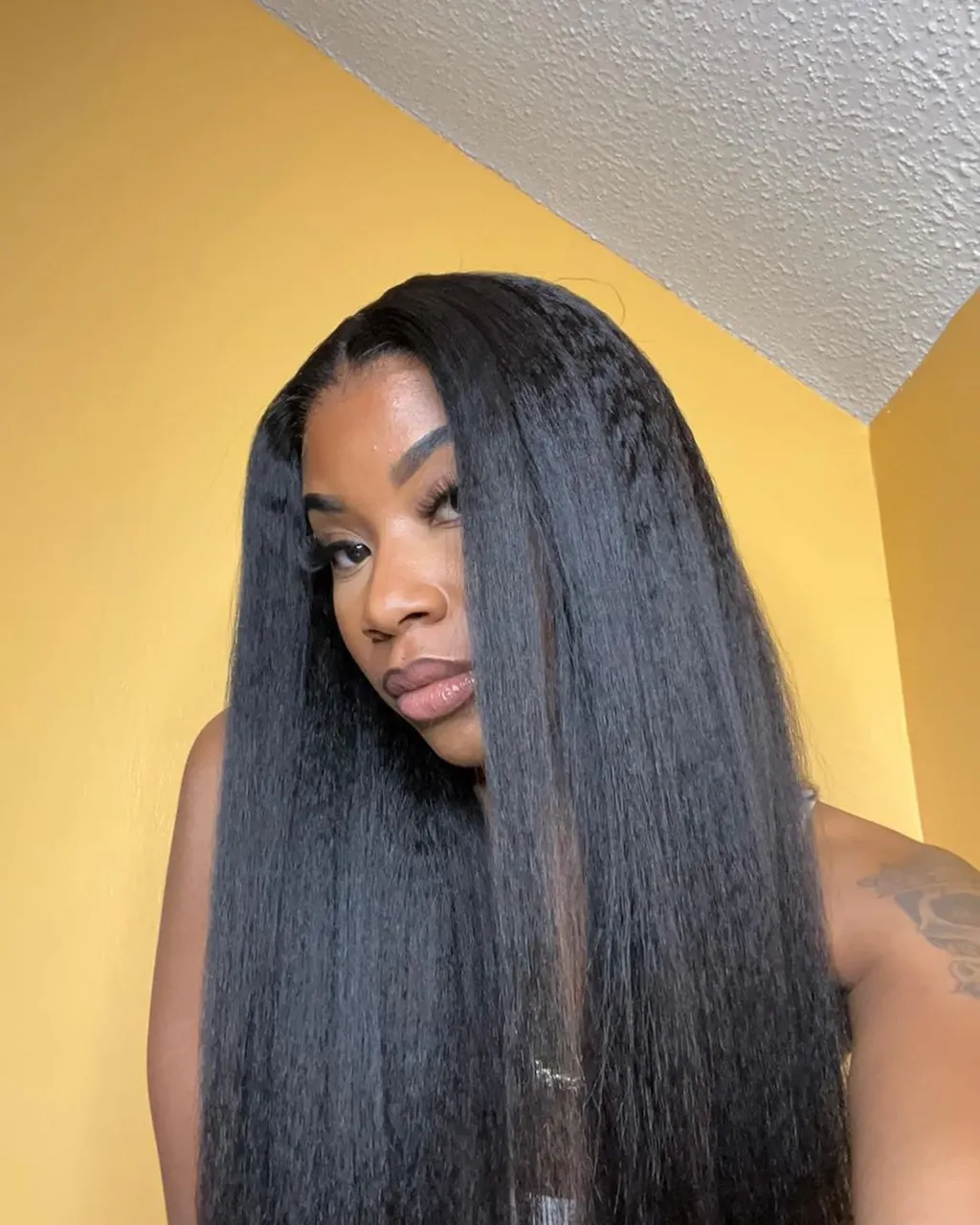 Dorsanee 4C Edge Kinky Straight Lace Wig 13X4 Lace Front Yaki Straight Wigs With Baby Hair Human Hair Wigs